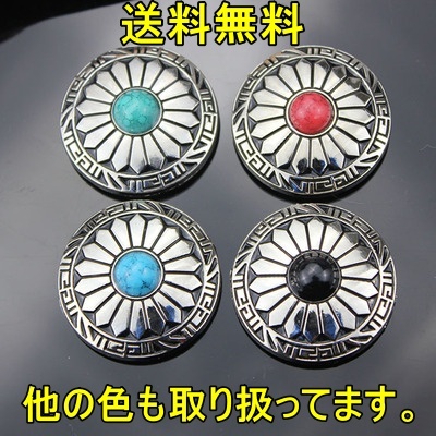 ターコイズ コンチョ1個 ネジ式 ブラックシルバー 30㎜ レザークラフト 装飾ボタン 唐草 フラワー インディアン ウエスタン DIY カスタム