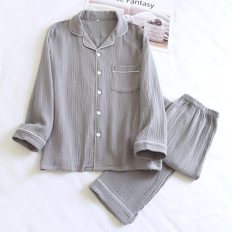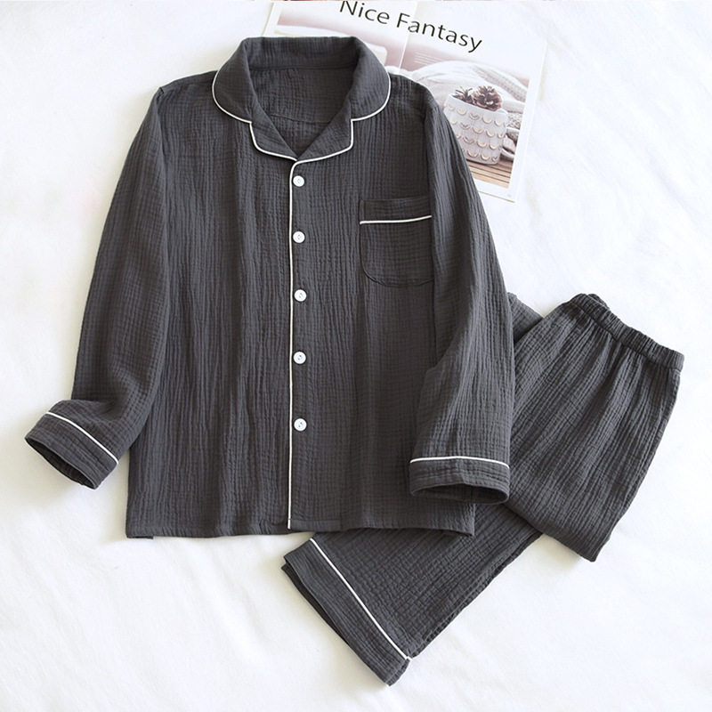 新品パジャマ メンズ 綿 上下セット 前開き 防寒 あったか ルームウェア エアコットン 長袖+長ズボン 3色/M~XXL選択/1点ダークグレー