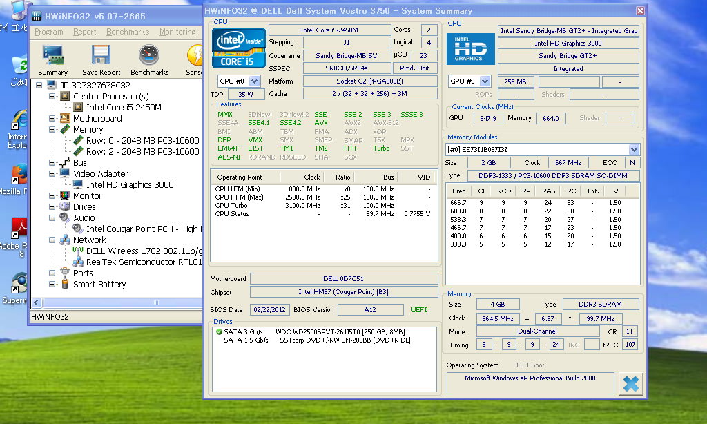 | ストレージ (ハードディスク) | HDD250GB...ソフトでチェック済【正常】 HDDに比べると起動やファイルの読み書きが大幅に高速になるだけでなく、 省電力、軽量、耐ショック性、低発熱のメリットがあります。 |