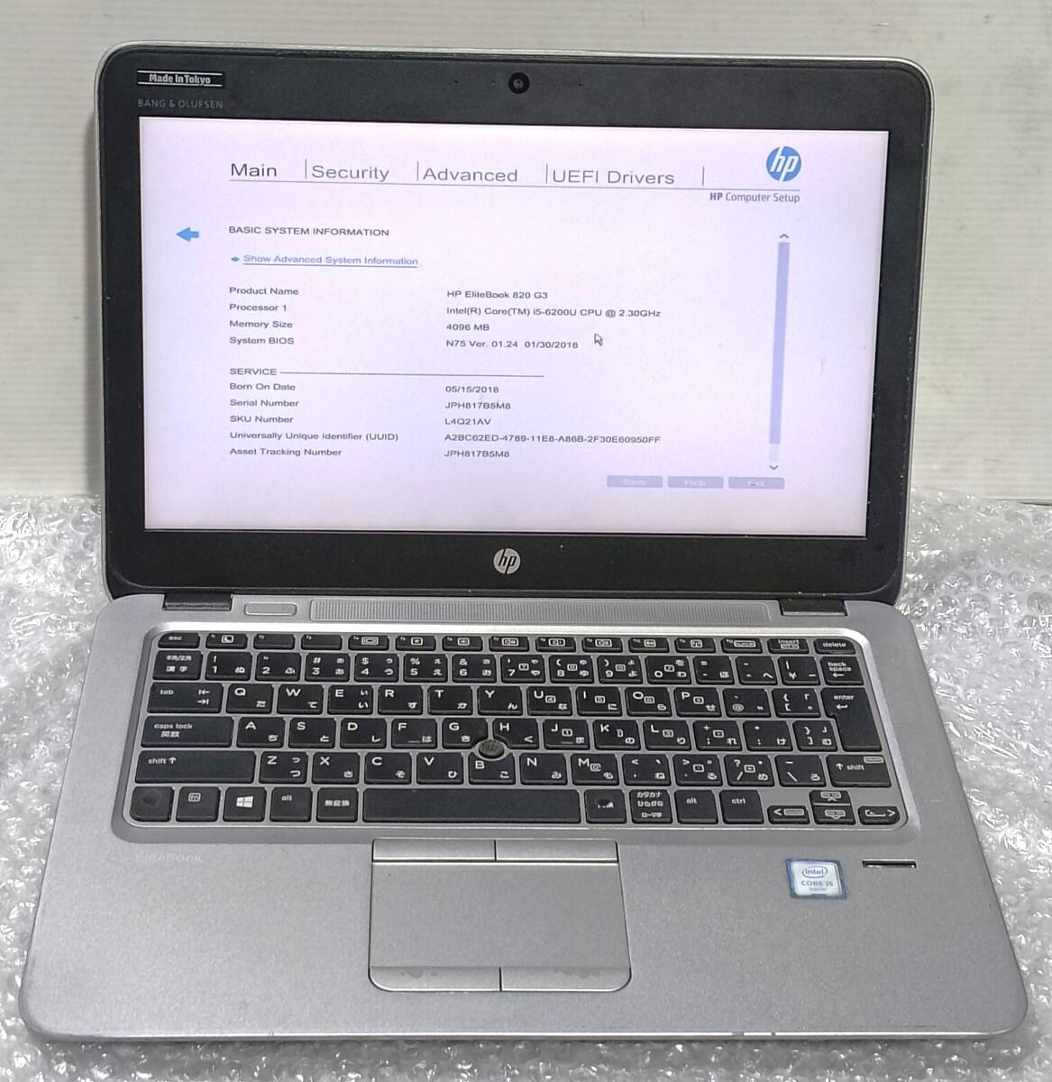 外観不良、HP EliteBook 820 G3 Corei5-6世代 4GB 12.5インチ ジャンク5106