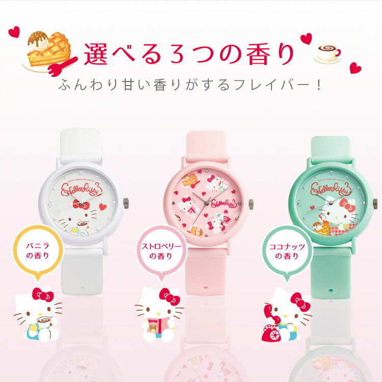 ハローキティ【KAORU x Hello Kitty】コラボウォッチ登場!バニラの香り レディース&キッズ 腕時計 クォーツ腕時計シリコンベルト 日本製 3針アナログ ホワイト KAORU003KW
