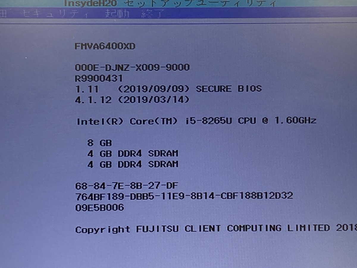 | CPU | Corei5-8265U | コアシール (プロダクトシール) |