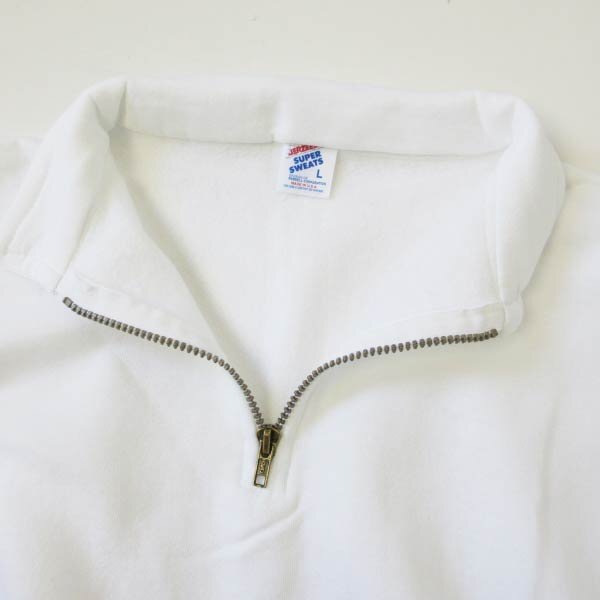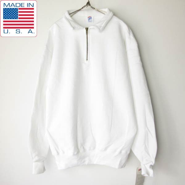 新品 90s USA製 JERZEES ハーフジップ スウェット L 白 ホワイト 無地 ジャージーズ クルーネック トレーナー ビンテージ D152-13-0018ZV