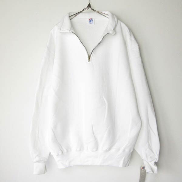 新品 90s USA製 JERZEES ハーフジップ スウェット L 白 ホワイト 無地 ジャージーズ クルーネック トレーナー ビンテージ D152