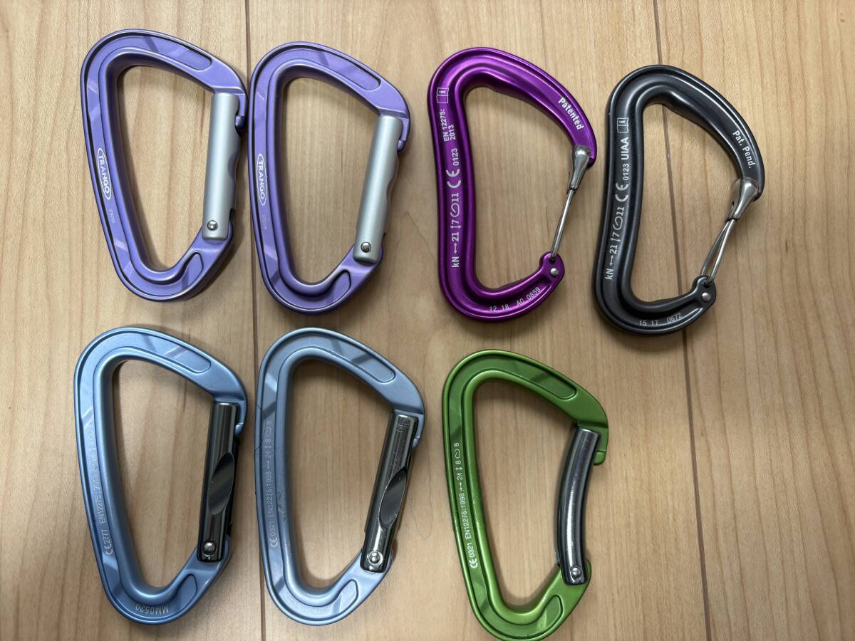 メーカー、モデルの違うカラビナの盛り合わせです。