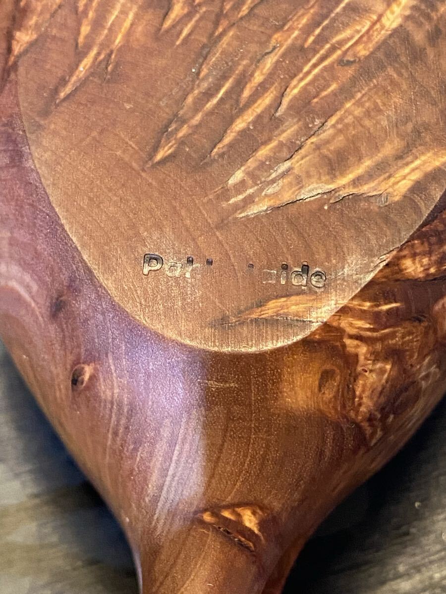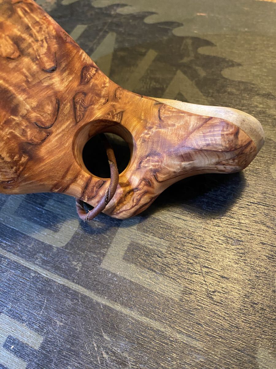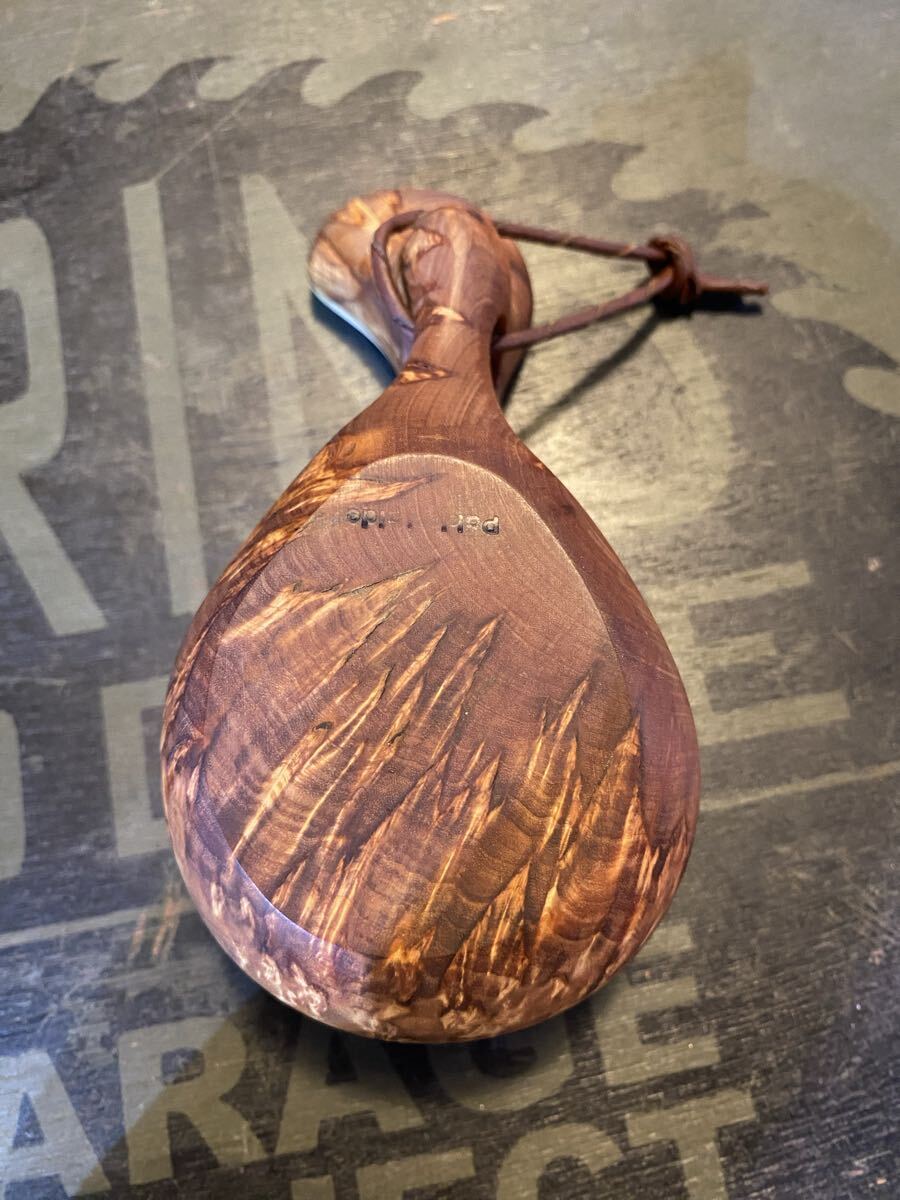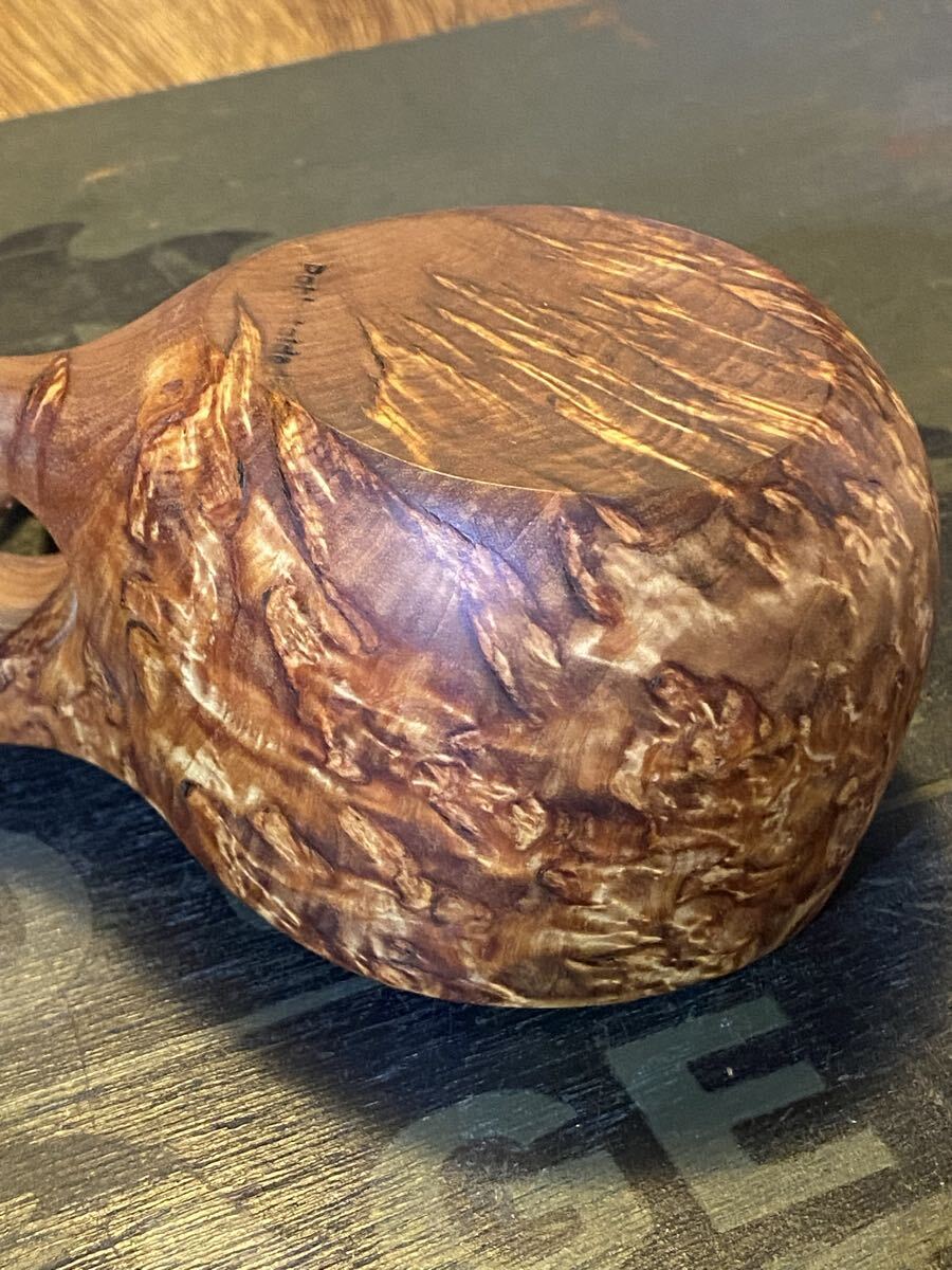 山脈の様な強烈な杢目が入っています(製作者も山をイメージしたようで、狼の装飾(ヘラジカ角)をつけたと言っていました)
