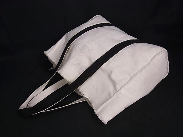 1円 ■美品■ CHANEL シャネル ココマーク キャンバス ハンドバッグ トート ショルダーバッグ 肩掛け アイボリー系×ブラック系 BM9804