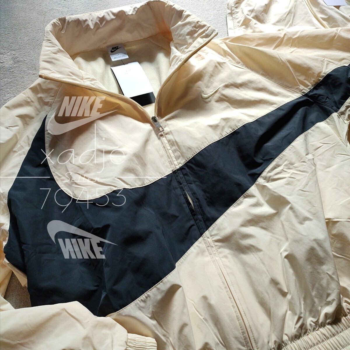 新品 正規品 NIKE ナイキ ビッグスウッシュ 上下セット ナイロン ジャケット パンツ セットアップ ココナッツ ベージュ 黒 定価29590円 2XL