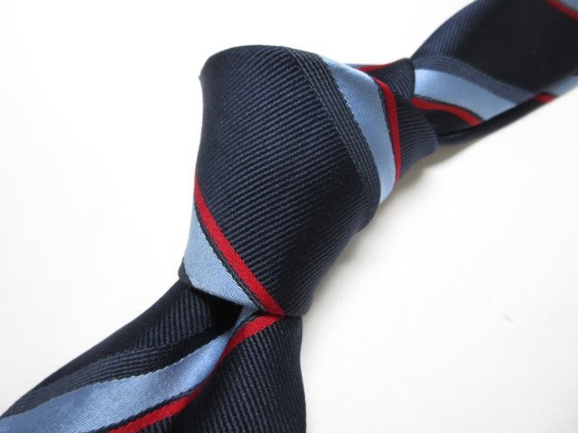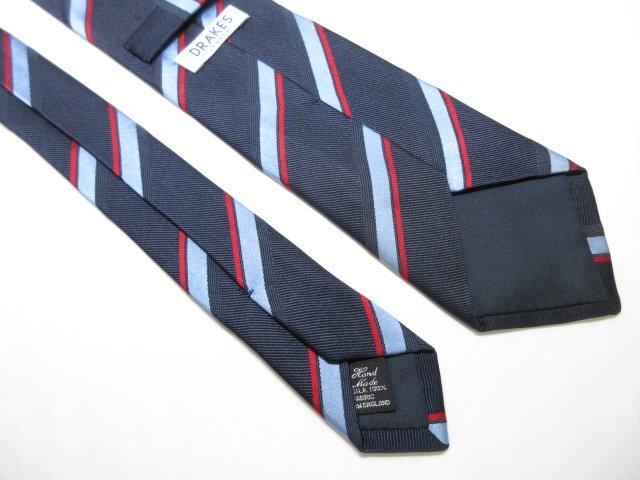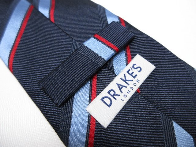 【DRAKE'S ドレイクス】素敵なレジメン柄 シルク ネクタイ (メンズ) ネイビー×ブルー×レッド系 ◇17MM8615◇