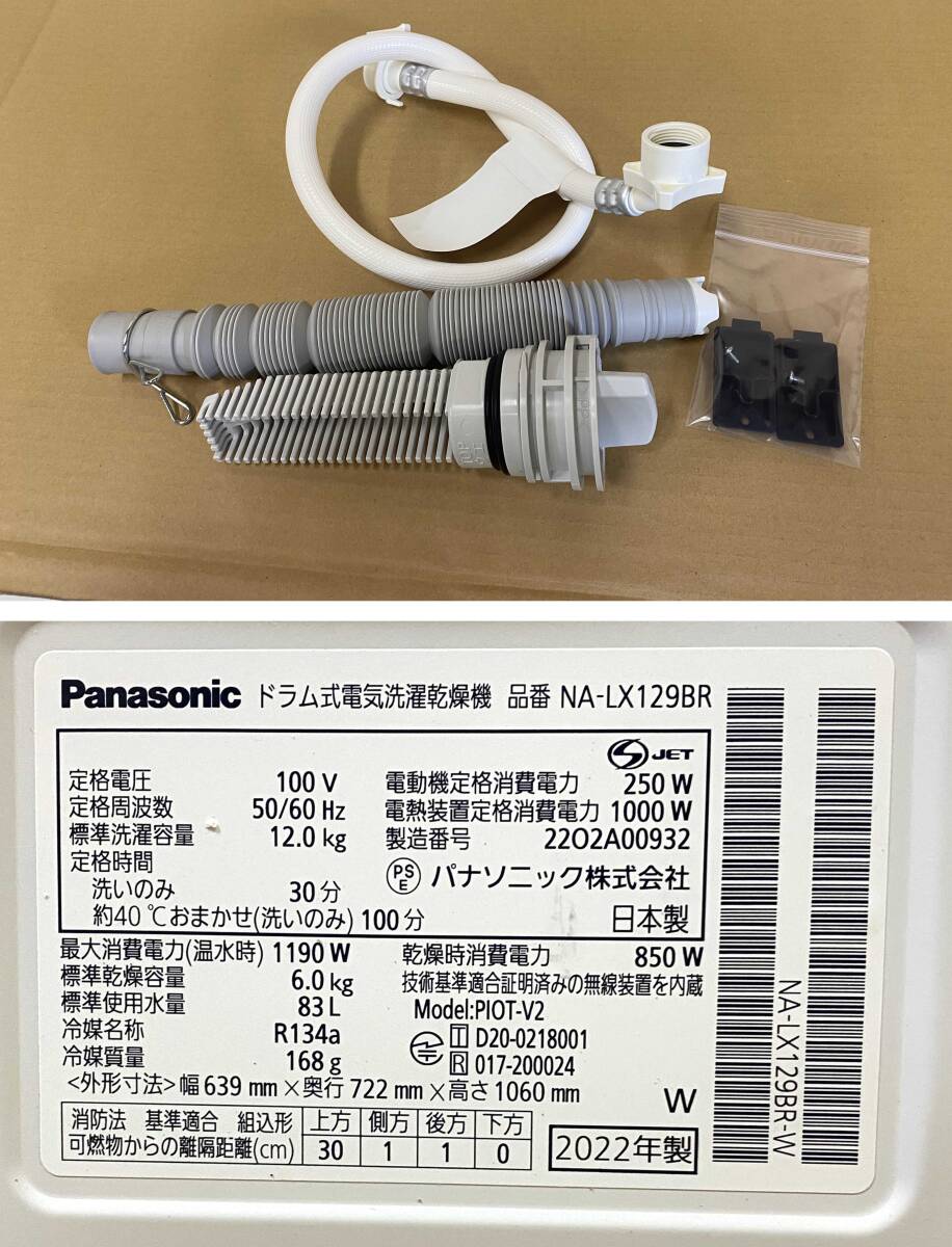 【パナソニック】Panasonic ドラム式洗濯乾燥機 NA-LX129BR-W 2022年製 右開き 洗濯12kg/乾燥6kg (D8)