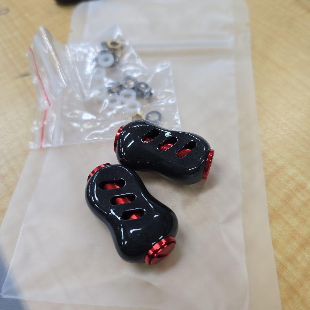 yu387 赤色 カーボン 炭素繊維製ノブ パワー リール ハンドル ノブ シマノ Shimano ダイワ Daiwa 適用 ベイトリール 対応 ベアリング付き