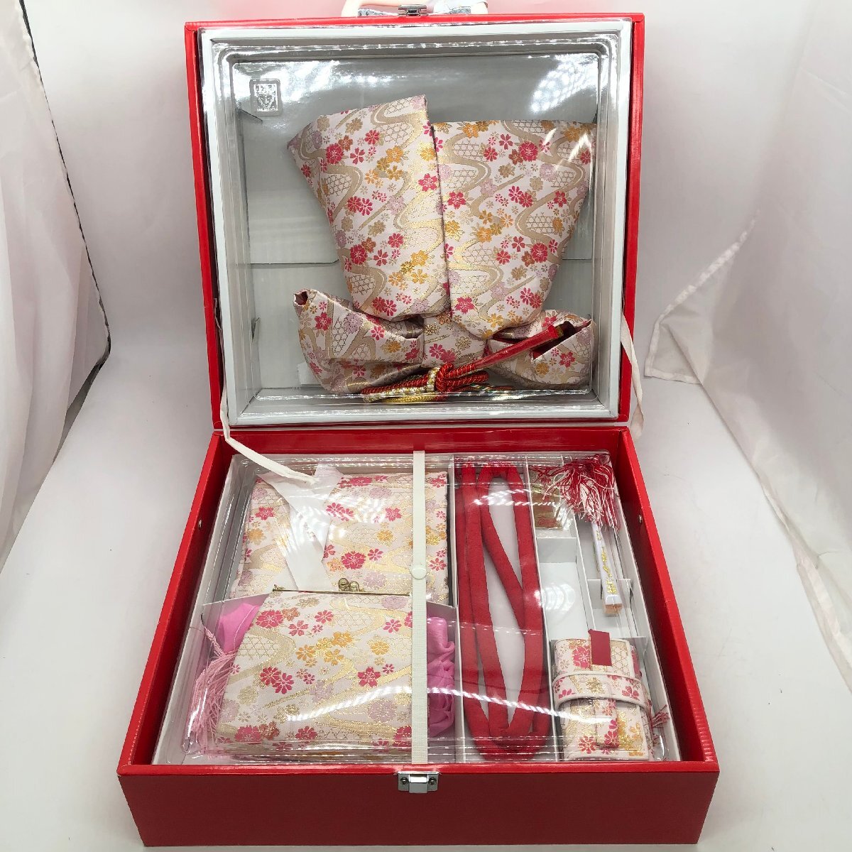 | ◎P622 七五三 小物セット 結び帯 バッグ 扇子 帯 etc... 白 花柄(ma) | |