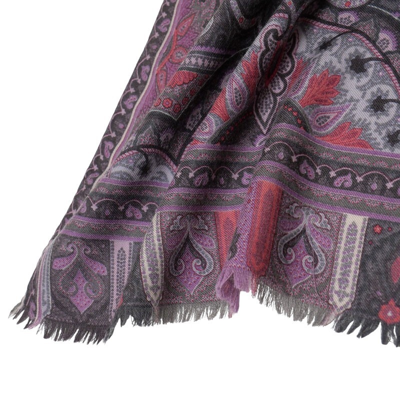 | TJ5920*イタリア製 ETRO エトロ シルクウール ペイズリーストール ショール スカーフ グレー/パープル系 | |||