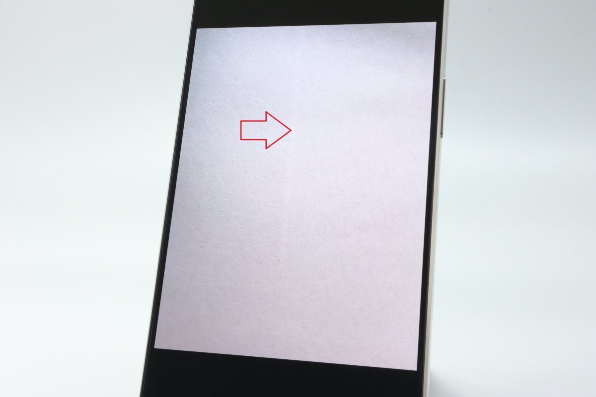 ・インカメラ撮影時、写真ともに縦(赤矢印)に光のラインが写り込みます(写真6 ※インカメラで撮影した写真を撮影してます)