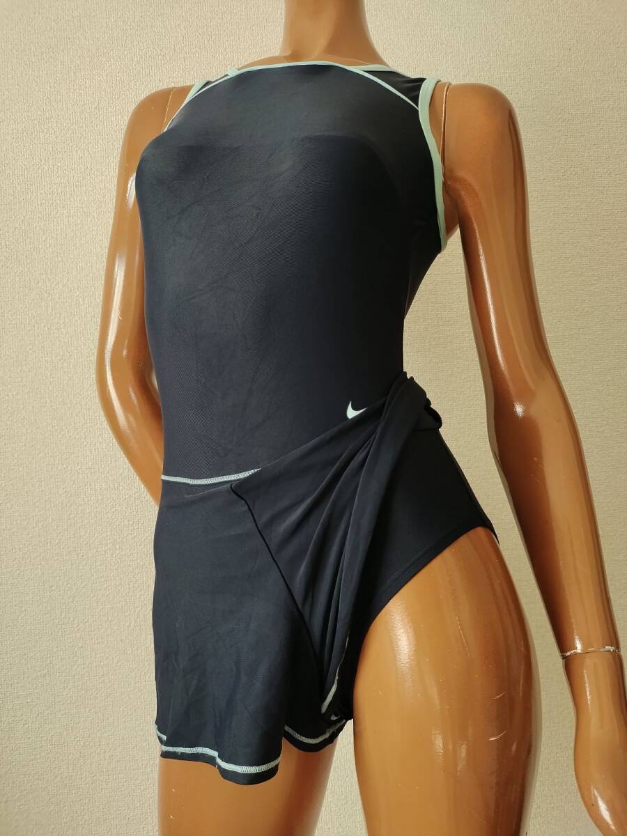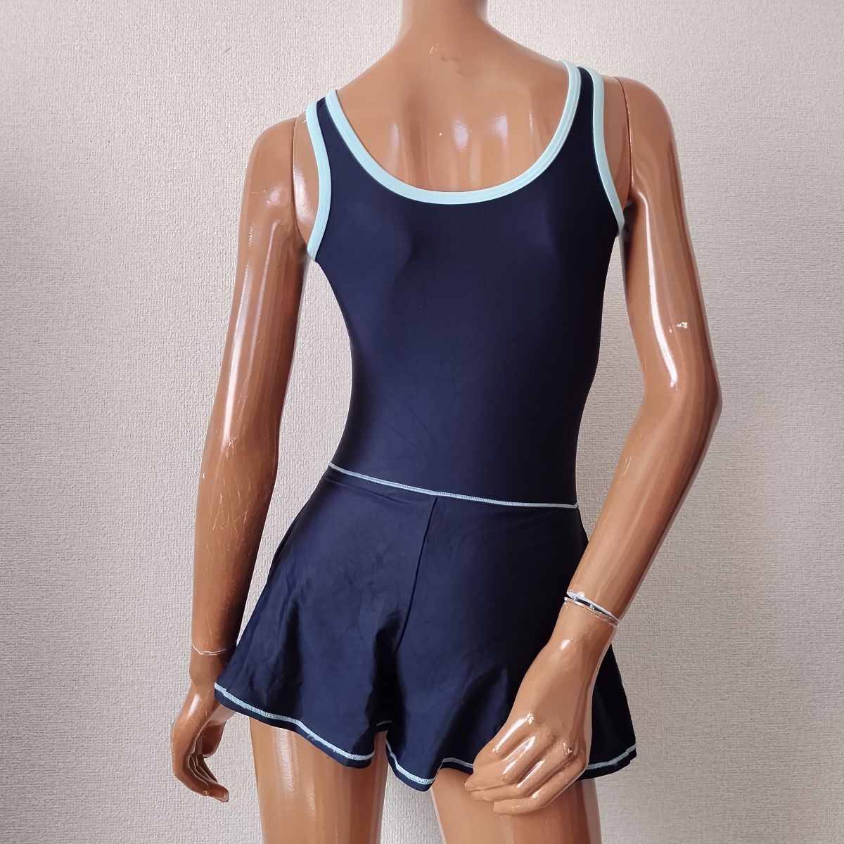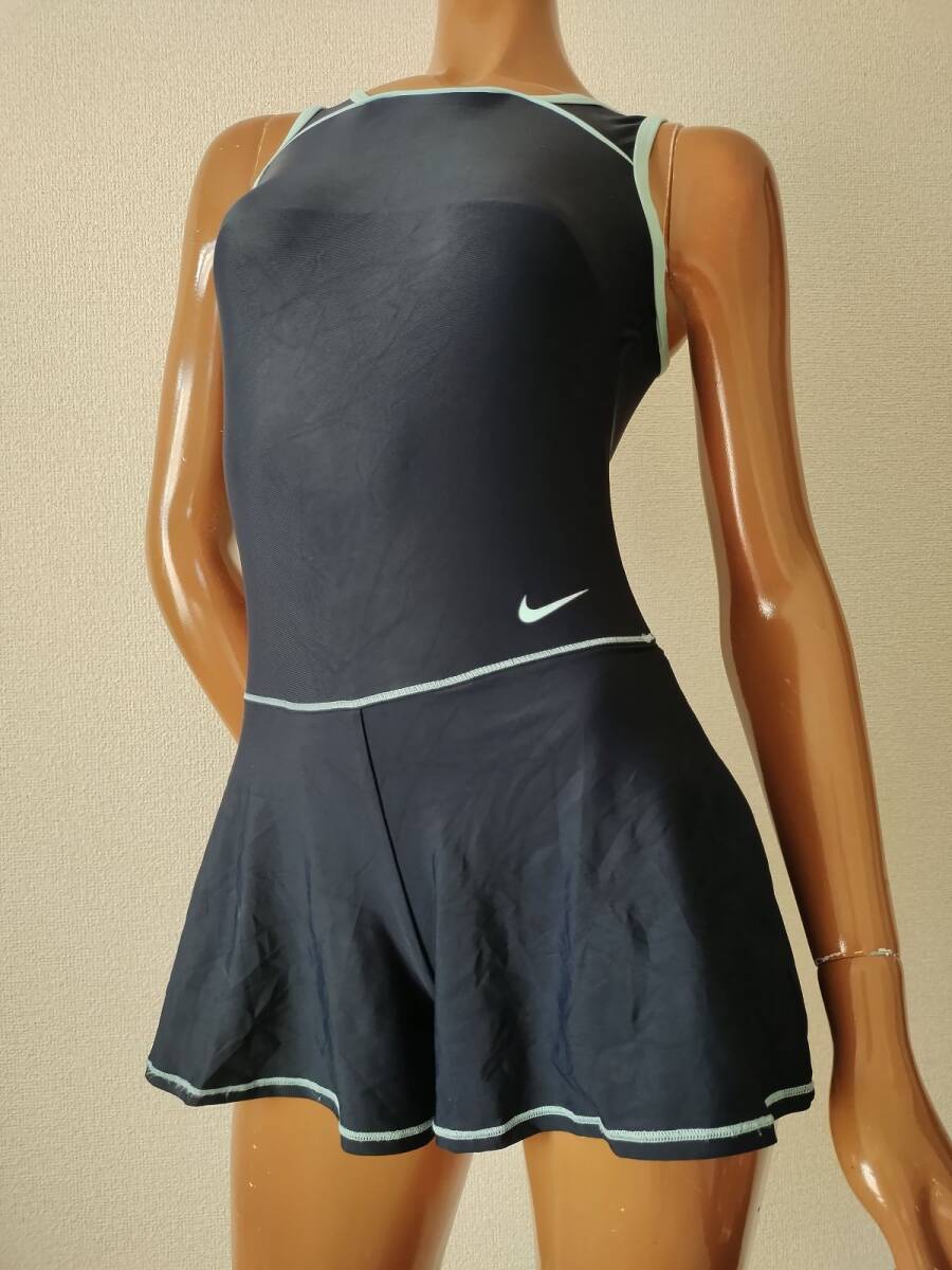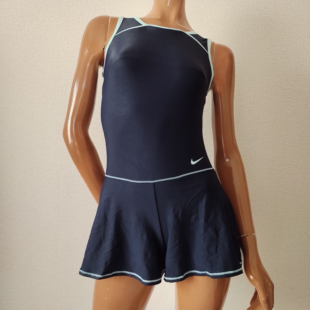 11*ナイキNIKE女子競泳水着160(Lサイズ)★股上ハイレグ★光沢濃紺ネイビー・水色ブルーパイピング★大きいサイズ男性も