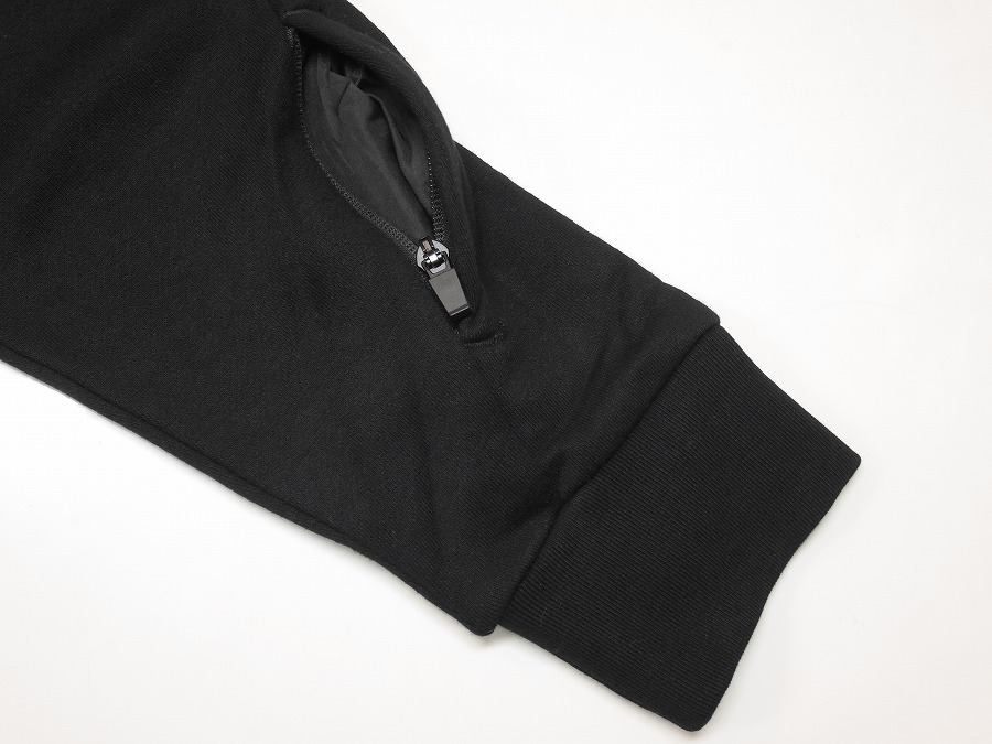 ジッパー付きのハンドポケットや、袖部分には便利なパスポケットを搭載。