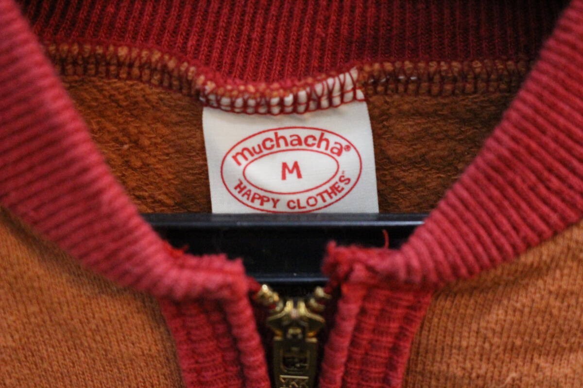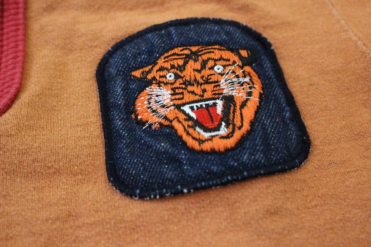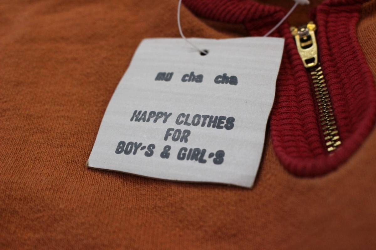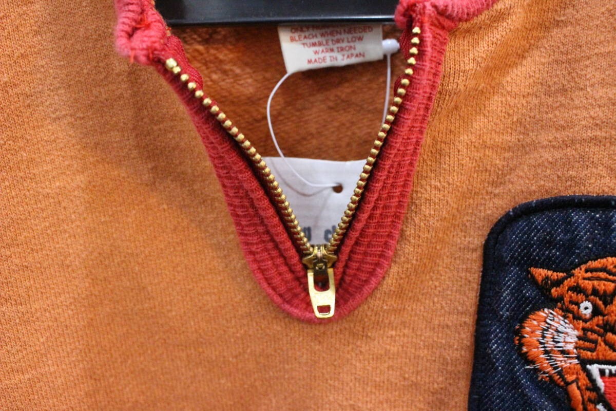 258 muchacha ムチャチャ ハーフジップ長袖スウェットシャツ M(110~120) 刺繍ロゴ ワッペン トラ 日本製 キッズ 子供服 オレンジ レッド