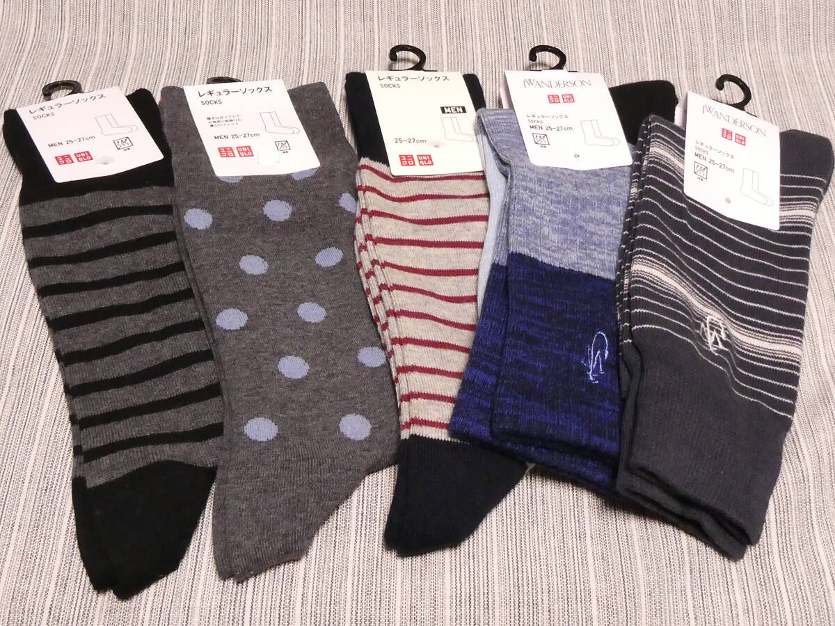 未使用 5足 UNQLO メンズ レギュラーソックス 25~27Cm 柄入り 靴下