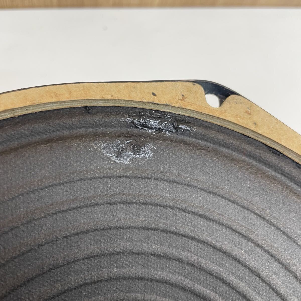 片方は、コーンやエッジに損傷がございます。割れて破れているところが3〜4箇所ほどあったり、補修された跡があったりします。