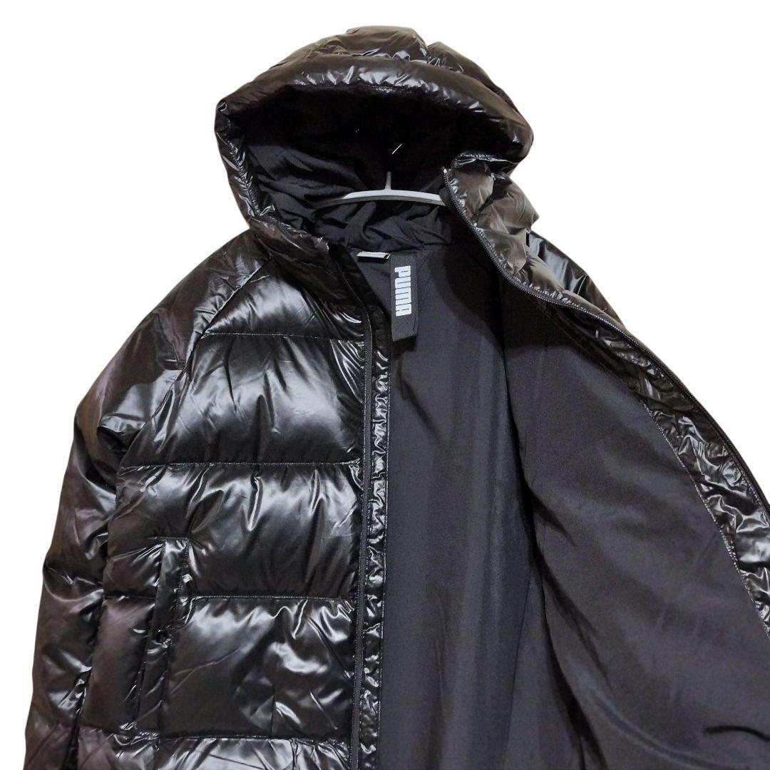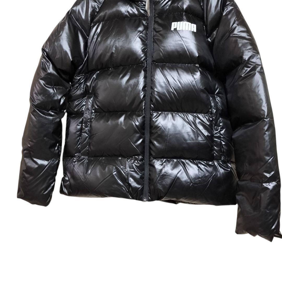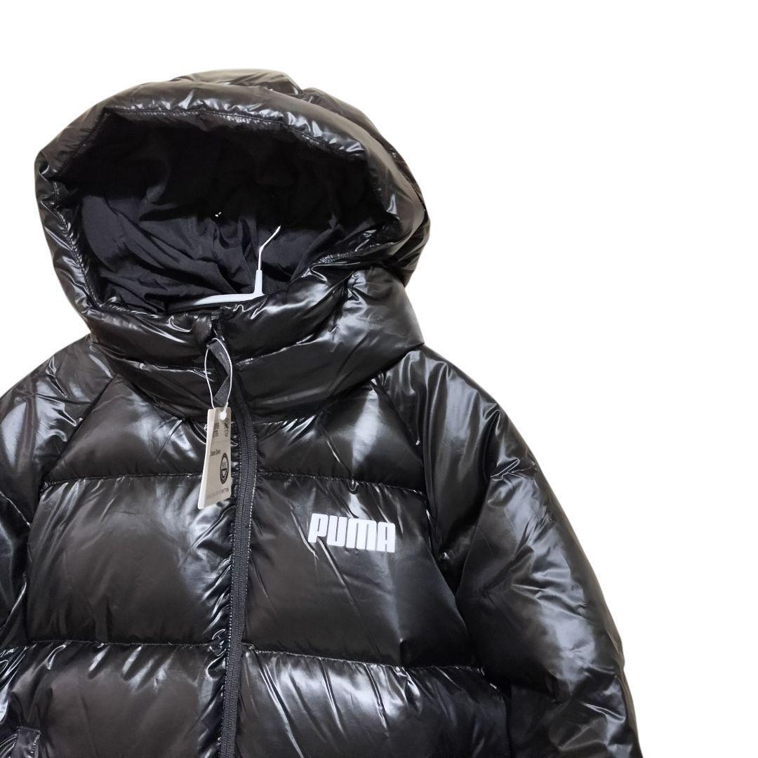 PUMAのレディース用ダウンジャケットです。艶感のあるブラックカラーにシンプルなロゴを配したデザインで、街着からアウトドアまで幅広く活躍します。中綿には RDS認証(Responsible Down Standard)グースダウン90%/フェザー10% を使用。