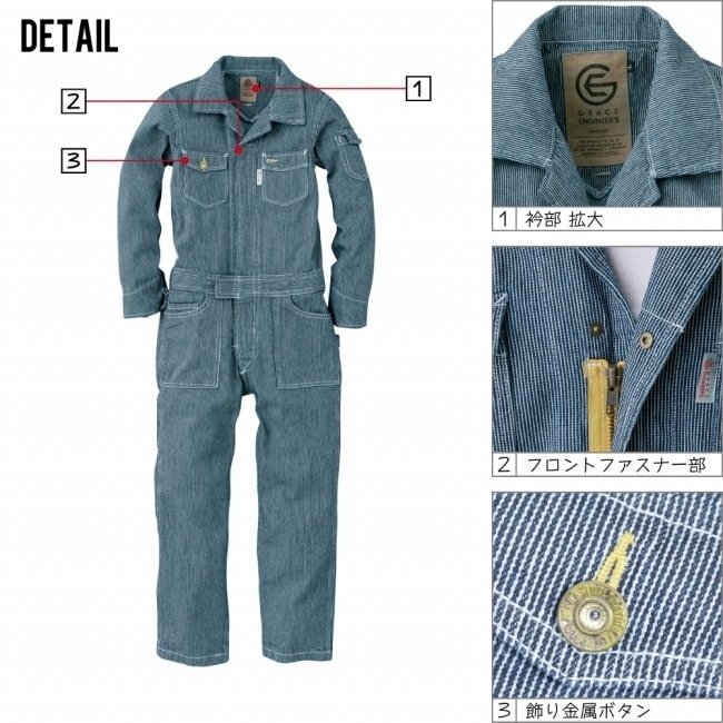 グレイスエンジニアーズ キッズ 通年 長袖 つなぎ GE-105 綿100% 色:ヒッコリー サイズ:150 ★ 対象2点 送料無料 ★