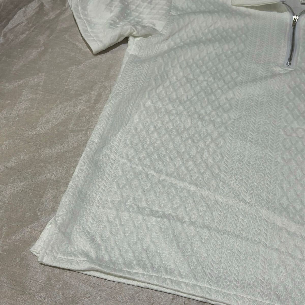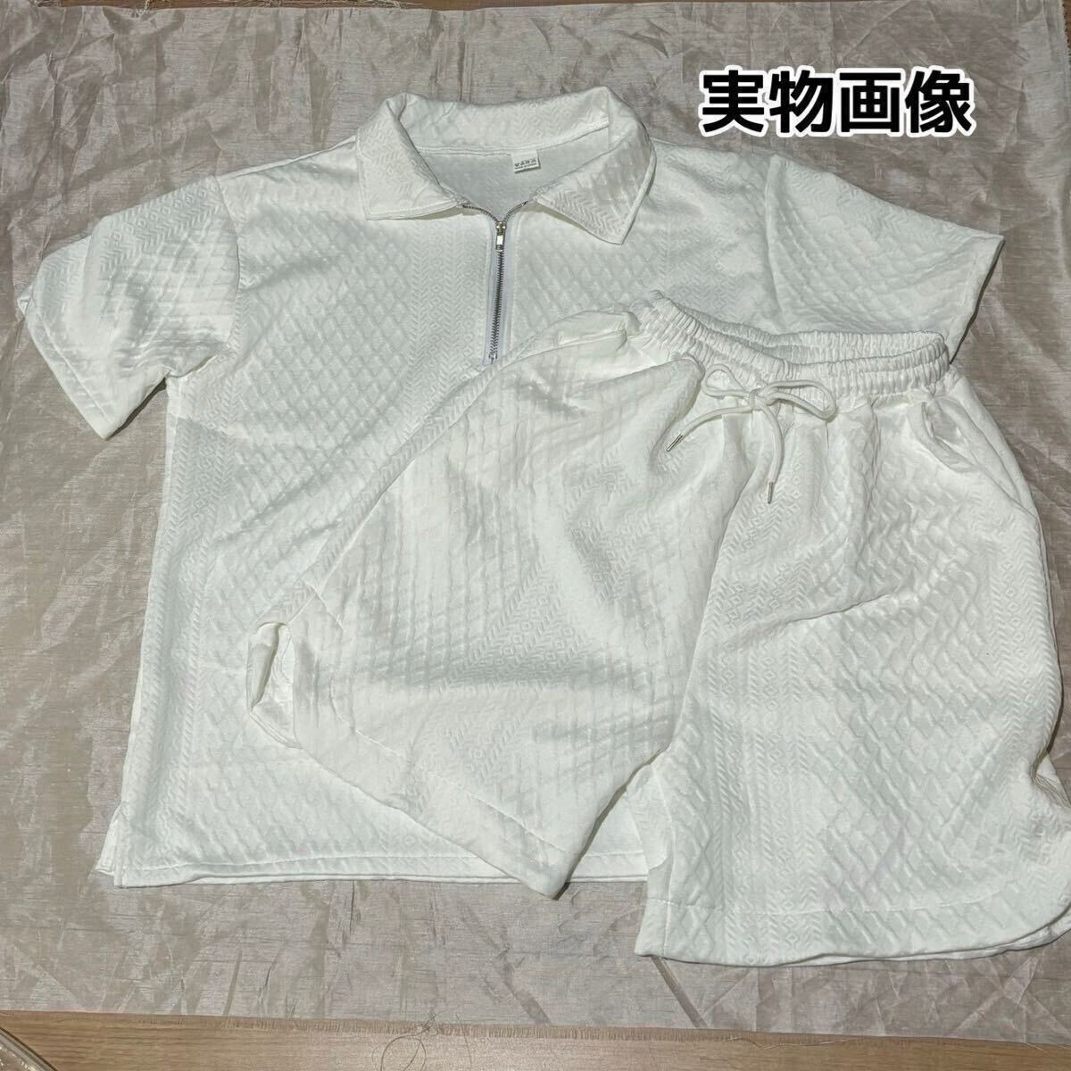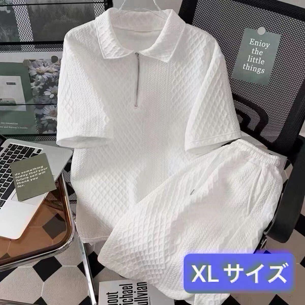 セットアップ 上下セット ルームウェア 部屋着 夏服 Tシャツ ハーフジップ 白 ホワイト XL