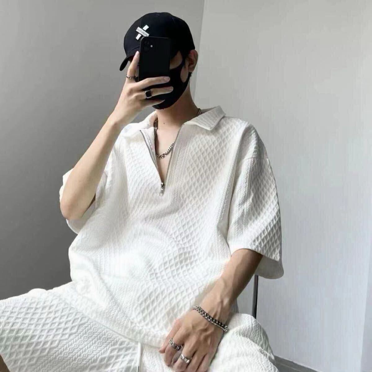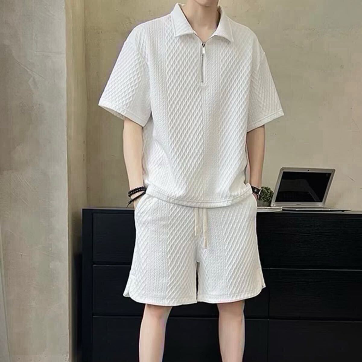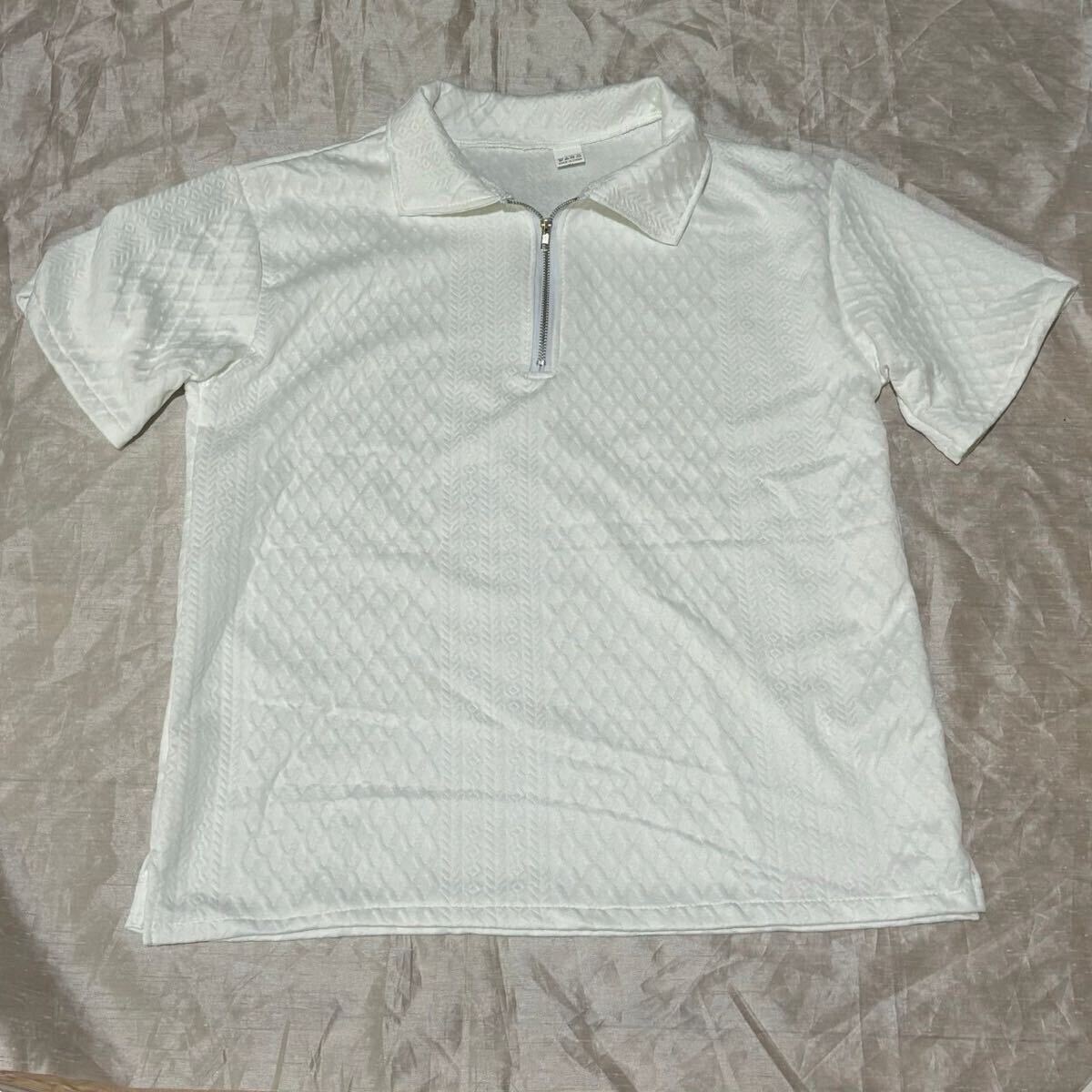 セットアップ 上下セット ルームウェア 部屋着 夏服 Tシャツ ハーフジップ 白 ホワイト XL