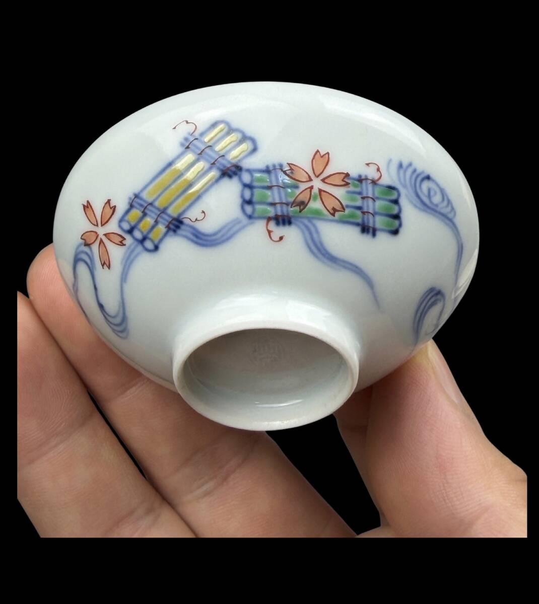 【偲】三浦竹泉 竹泉ぐい呑み   盃 細密赤絵  酒盃 ぐい呑み  酒器 一対 在銘   b-65