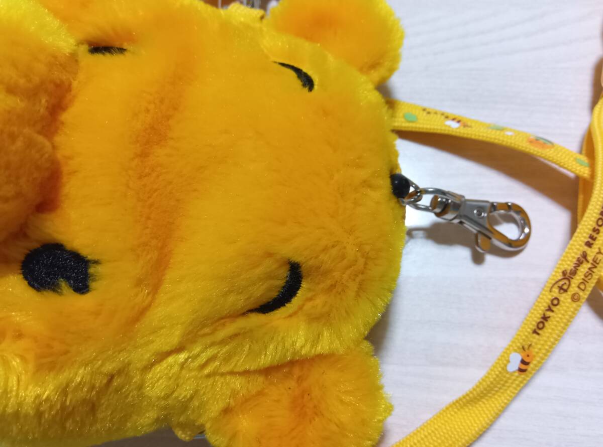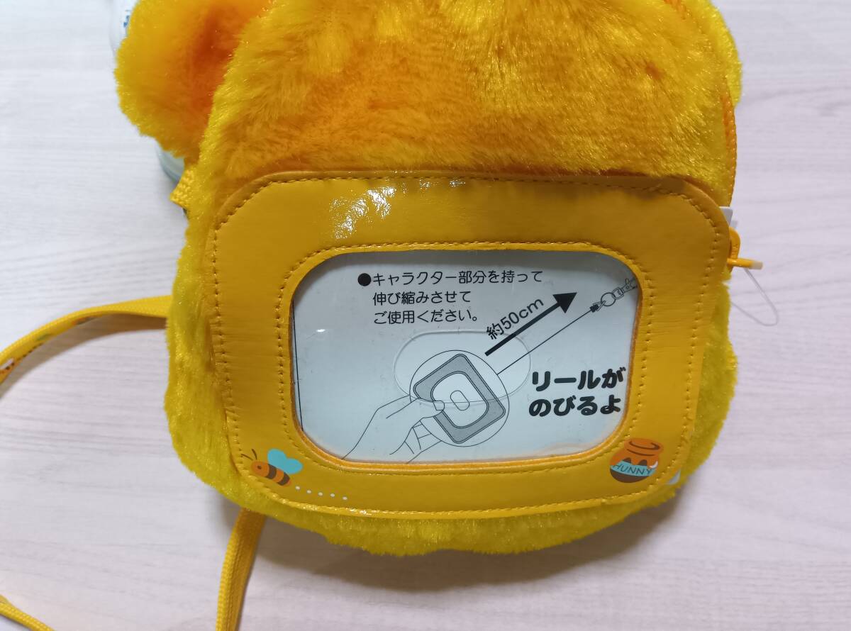 プーさんの頭の部分のリールがのびるようになっていて、ファスナーも大きく開くデザインです