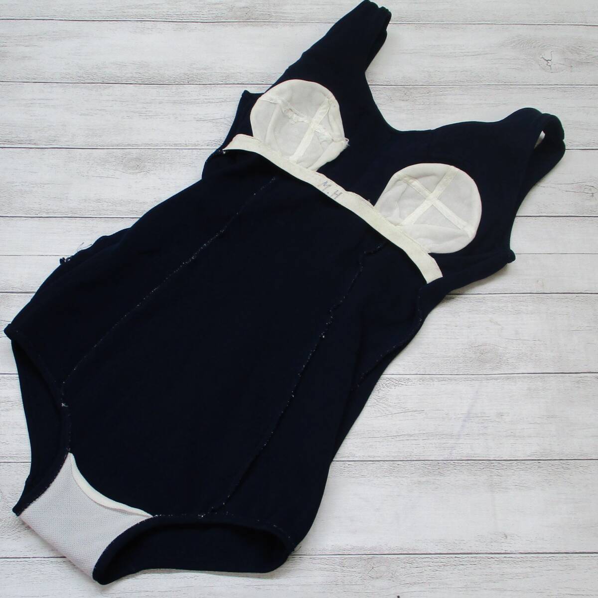 c5370★ナイロン100% 旧型 前スカート型 レトロ 競泳水着 女子 レディースM相当 ネイビー紺 ワンピース 無地 シンプル 厚手 コスプレ 衣装