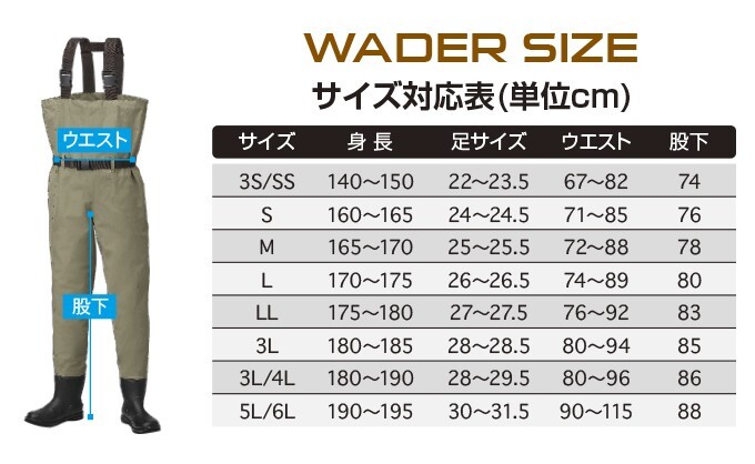 チェスト丈の透湿ウェダー