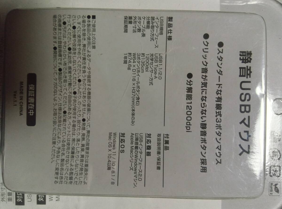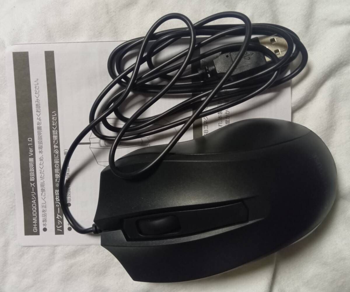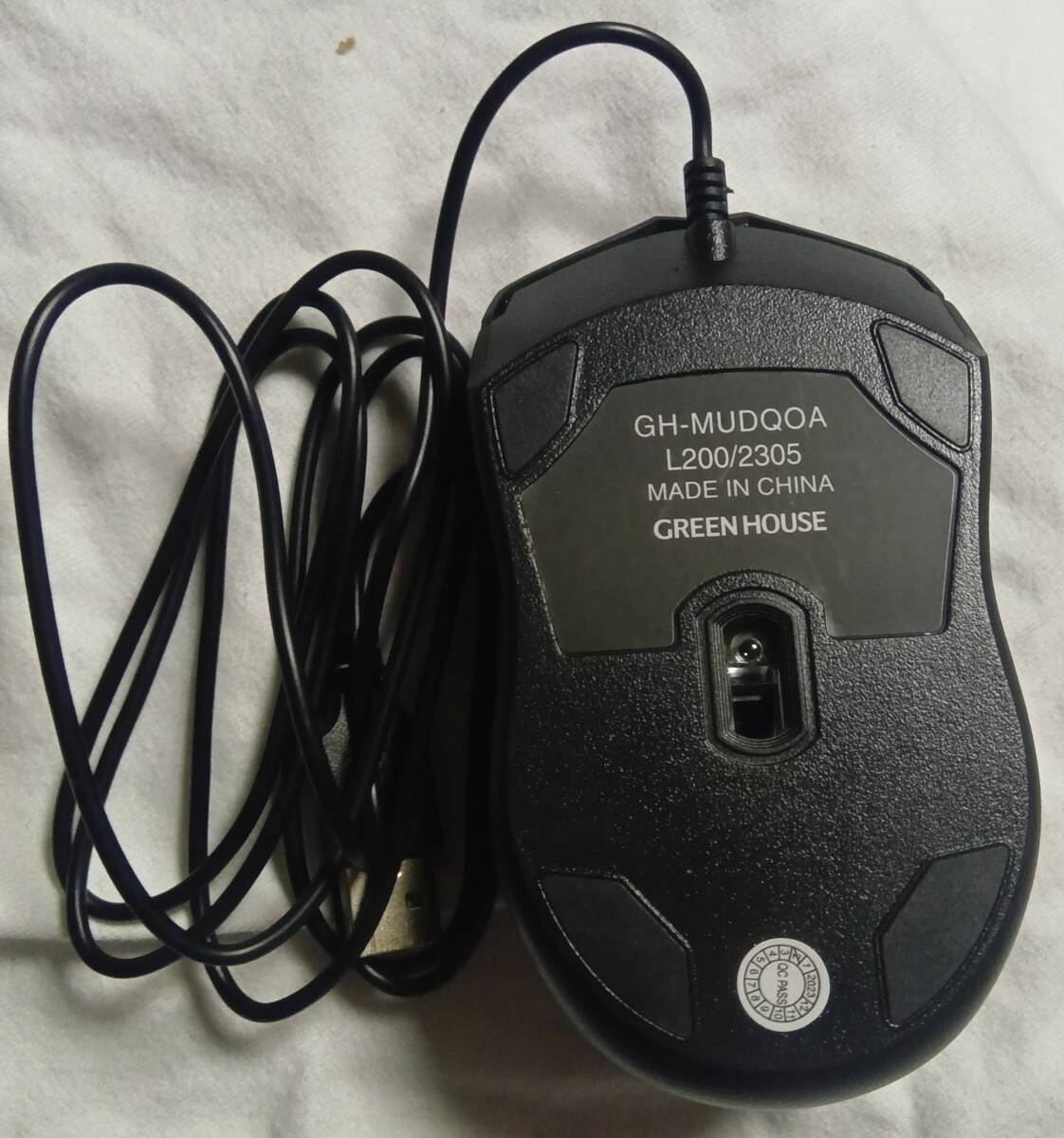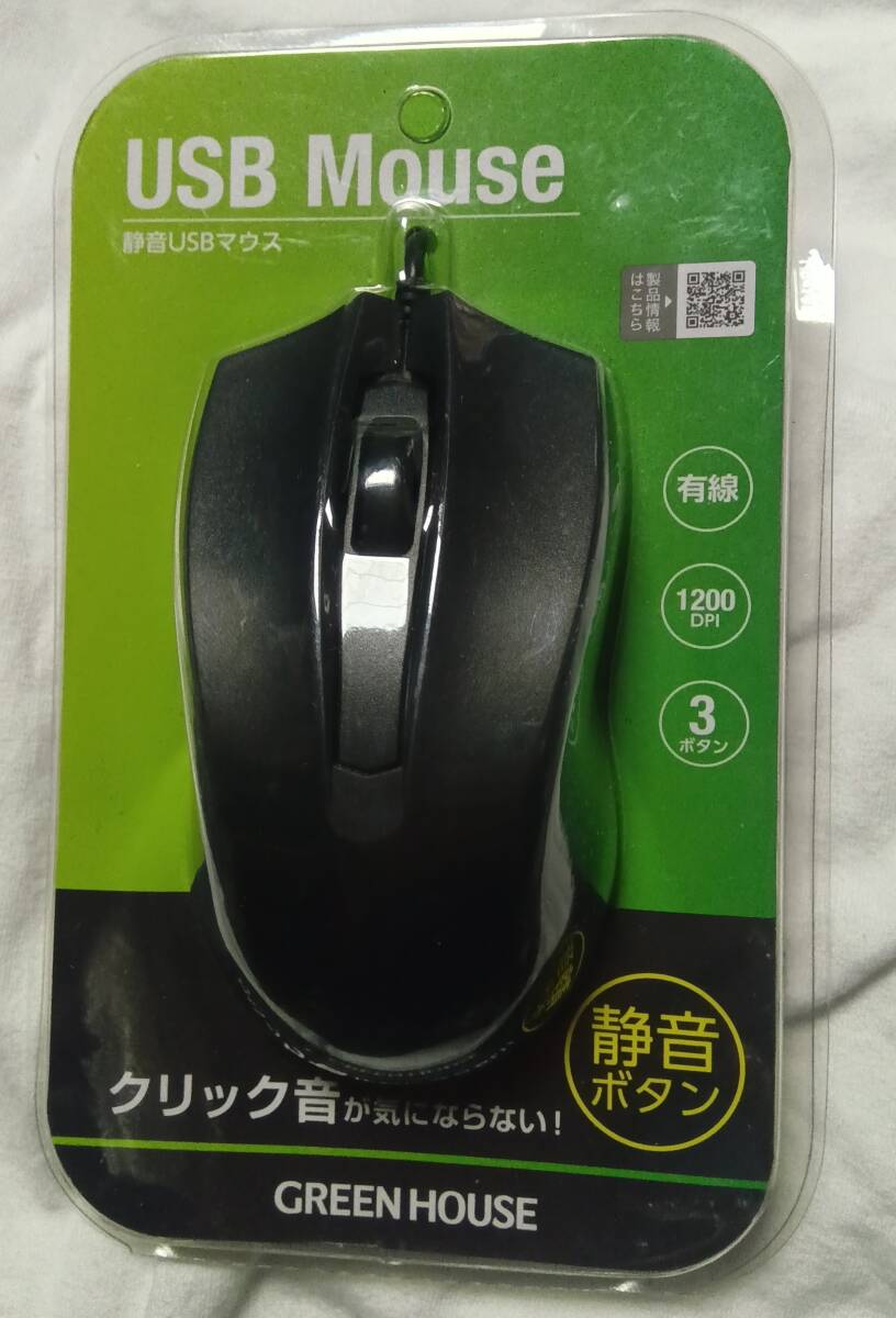 静音USBマウス(3ボタン、1200dpi、GREEN HOUSE)。