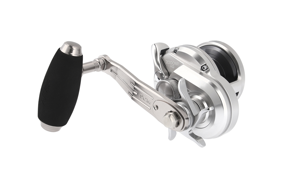 ブルーヘブンシリーズに採用しているAEノブとアルミアームを大型 - 中型ベイトリールに装着可能。