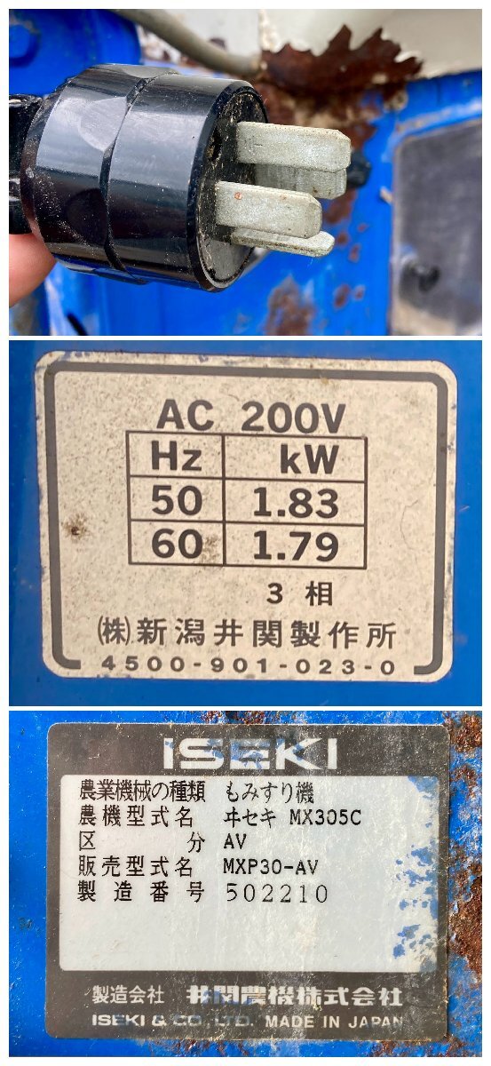 ◆【ヤフオク限定価格】香川県 中古 農機具 ジャンク品 イセキ もみすり機 MXP30-AV パールメイト30 三相200V