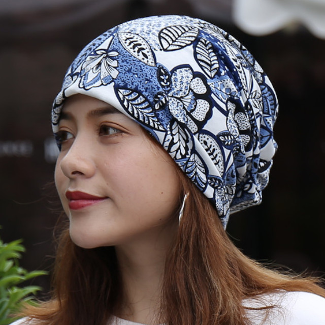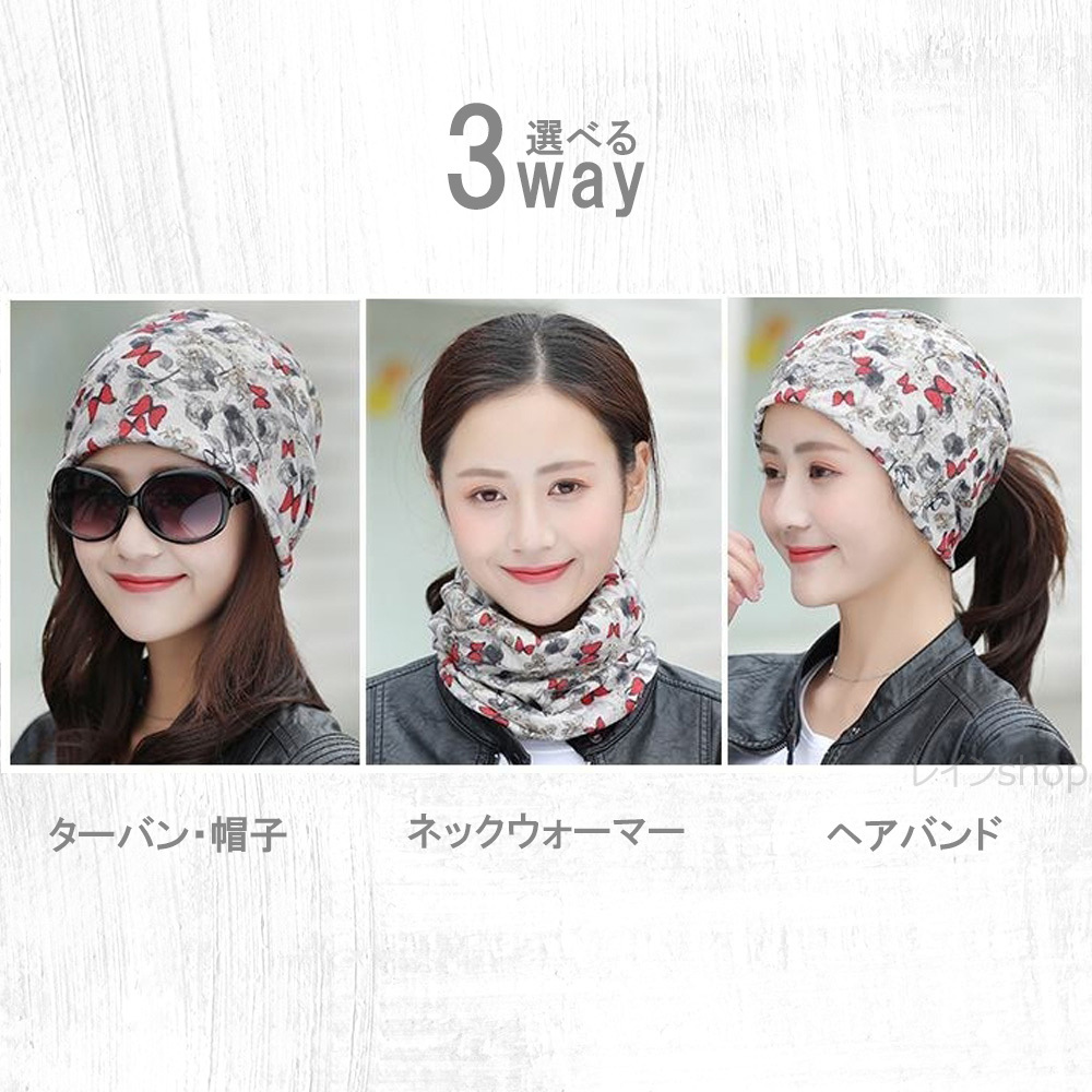 ケア帽子 バンダナ帽 ネックウォーマー ヘアターバン ヘアバンダナ 帽子 3way 模様03 青色 exia