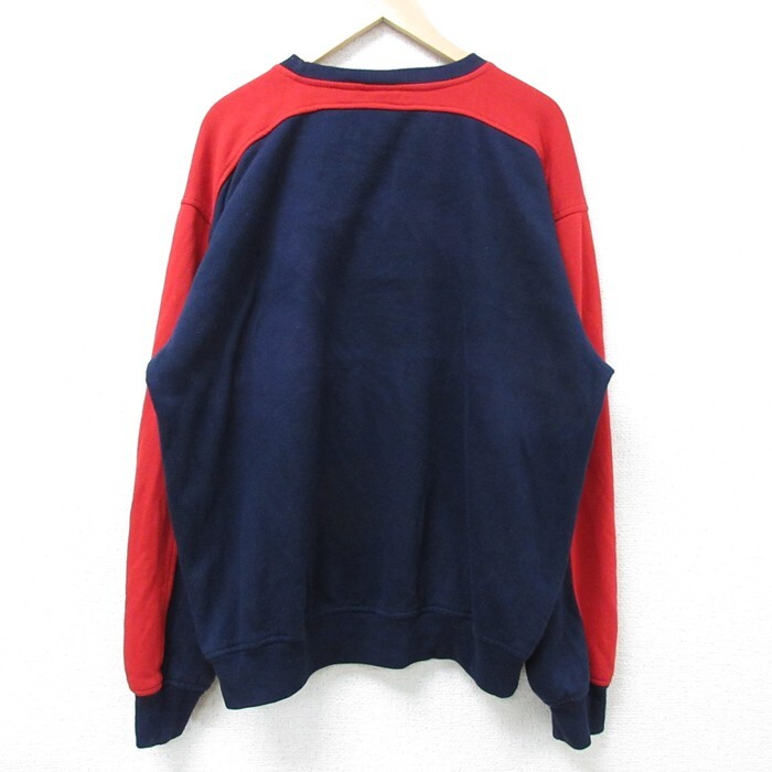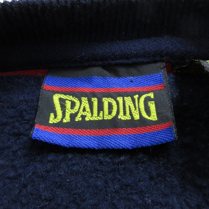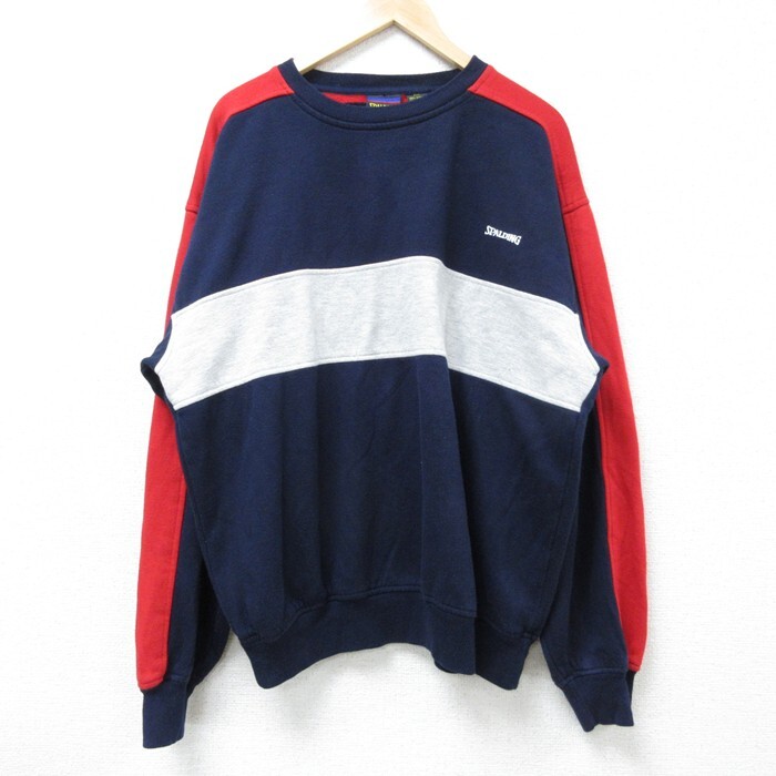 【商品名】 XL★古着 スポルディング 長袖 スウェット メンズ 00年代 00s ワンポイントロゴ マルチカラー アクリル クルーネック 紺他