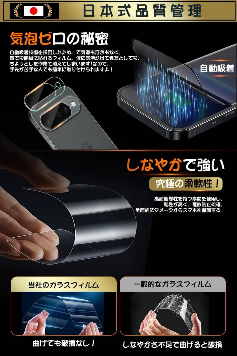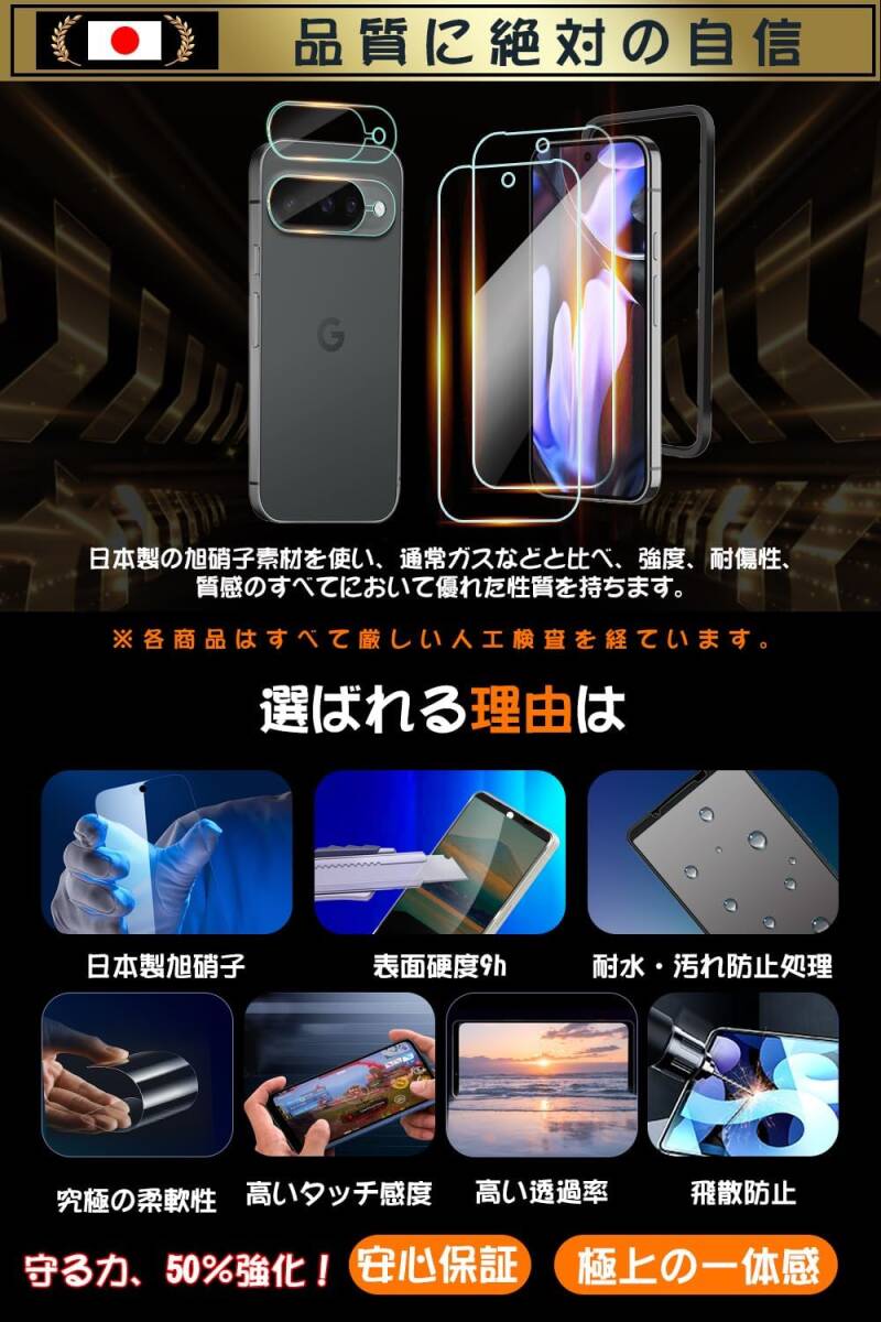 • 【日本旭硝子素材製・硬度9H超え】 Pixel 10 保護フィルム. (高品質 日本製素材,気泡の侵入を防ぎ、簡単に貼り付けることができます、 ガラスフィルムは非常に滑らかです。)業界 最 高レベルの9H硬度を有し、4.5時間以上の高温クエンチ処理を受け、スクリーンプロテクターは、通常のガラスよりも5倍高い125MPaの圧縮強度を持っています。 9H硬度を持つガラスにハードコーティングが施されることにより、フィルムは外部衝撃を吸収できる、画面へのダメージを最低限まで抑えました。あなたの大切な携帯電話のカメラ画面を衝撃や傷から守る!