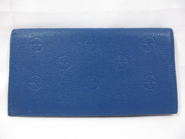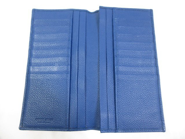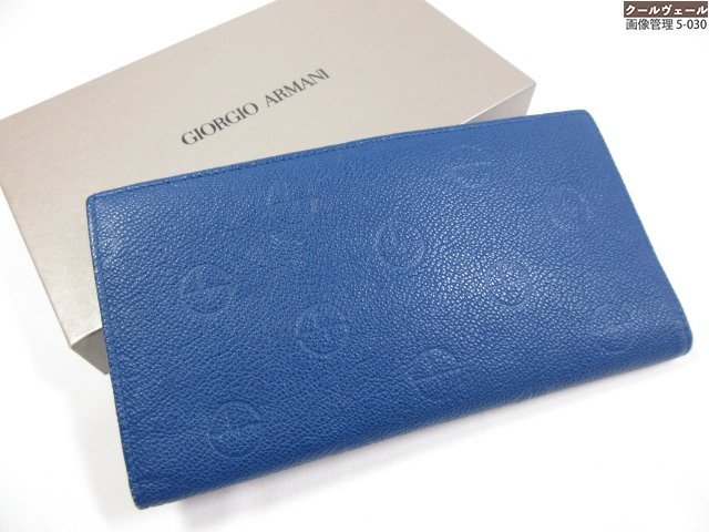 美品【ジョルジオアルマーニ GIORGIO ARMANI】 Y2R 394 レザー 2つ折り 長財布 ウォレット (メンズ) ブルー ボックス付き♪ ◇3ME7664◇