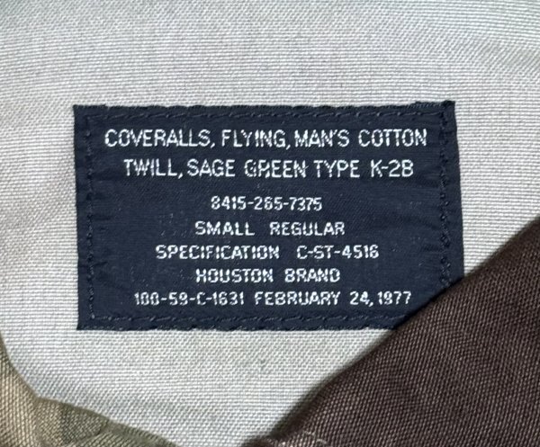HOUSTON ヒューストン TYPE K-2B フライト スーツ つなぎです。