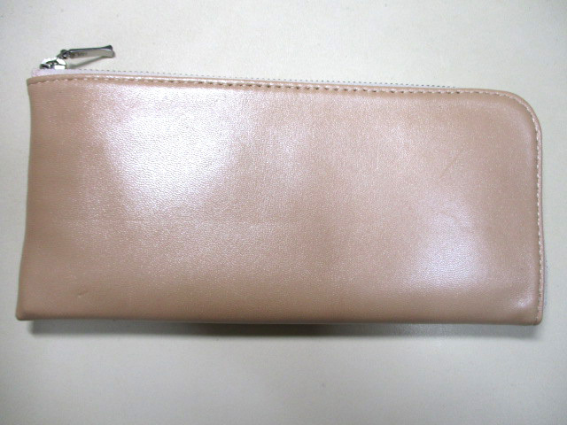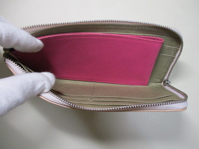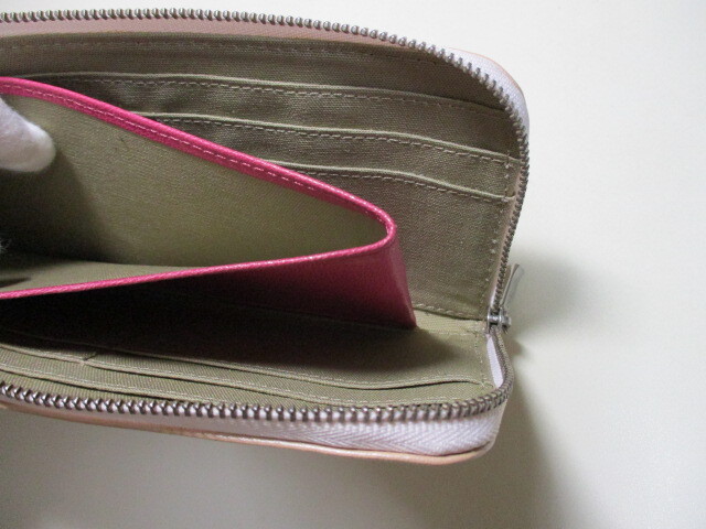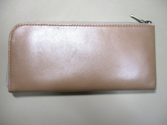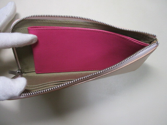 訳アリ 新品 未使用 財布 長財布 Lラウンド スリム 薄マチ 本革 牛革 光沢のあるピンク