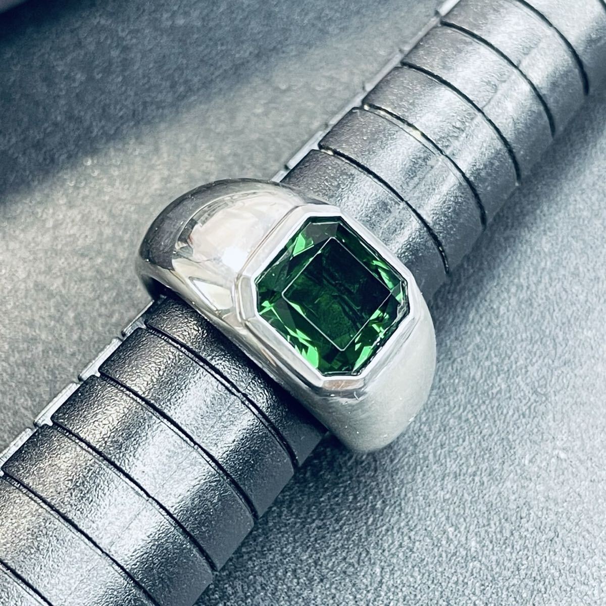 グリーンの色石が装飾されたBARBERRY印台リングモデルもなります。