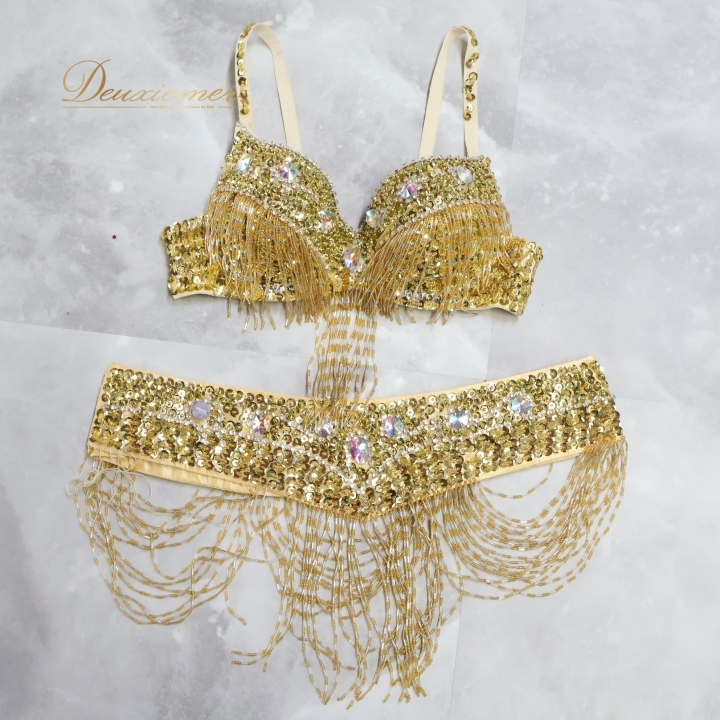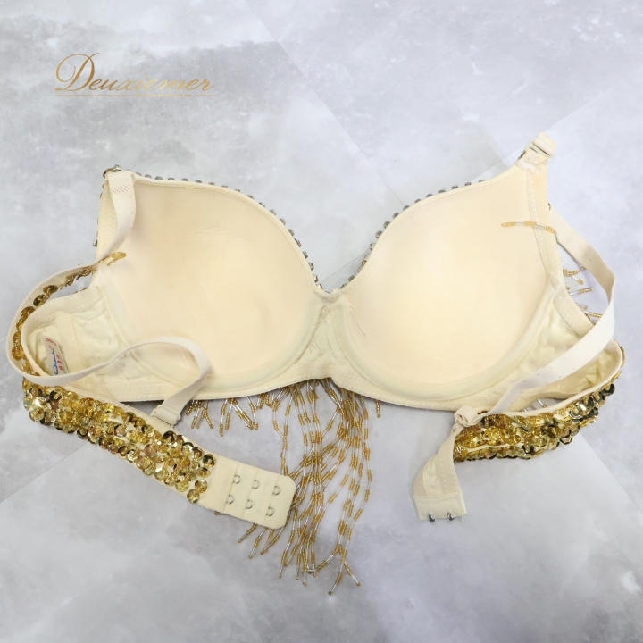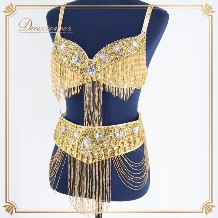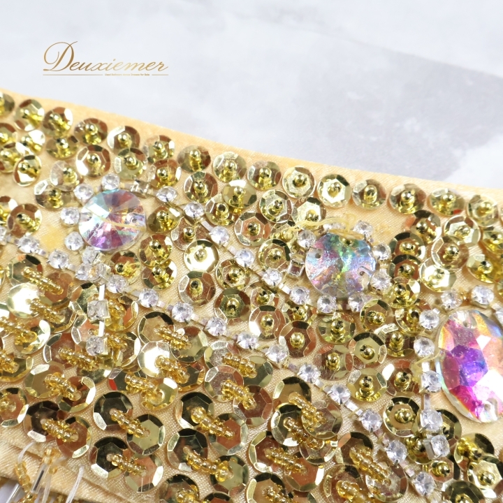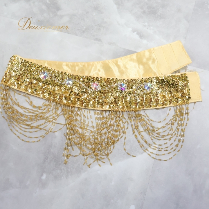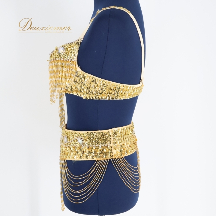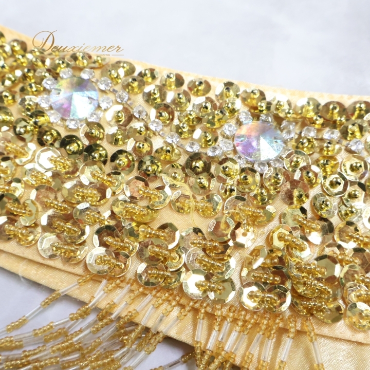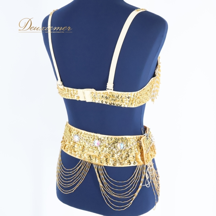 | 【商品名】ベリーダンス オリエンタル衣装 トップス 【サイズ】36/80表記 平置き実測:パッド両端長さ約27cm、アンダーストラップ全長約70cm、 アンダーストラップ(ブラ部分を除く)右約17cm 左約22cm ※実測の為、多少の誤差はご容赦願います。 【仕様】 ・アンダーストラップ伸縮性有り 【品質表示】 表示無し ベルト 【サイズ】表記無し 平置き実測:全長約90cm、幅約7~11cm ※実測の為、多少の誤差はご容赦願います。 【仕様】 ・マジックテープ仕様 【品質表示】 表示無し ------------------------------------ 【ポイント】 ▽ゴールド×シルバー ▽ラメが豪華で煌びやか ▽トップス ベルト セット ------------------------------------ 【撮影時使用トルソー】 種 類:女性用トルソー9号 (一般的に使用されるサイズです) サイズ:肩幅約37cm、バスト約88cm、ウエスト約66cm、ヒップ約89cm |