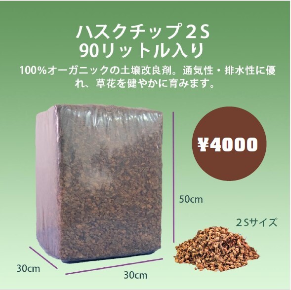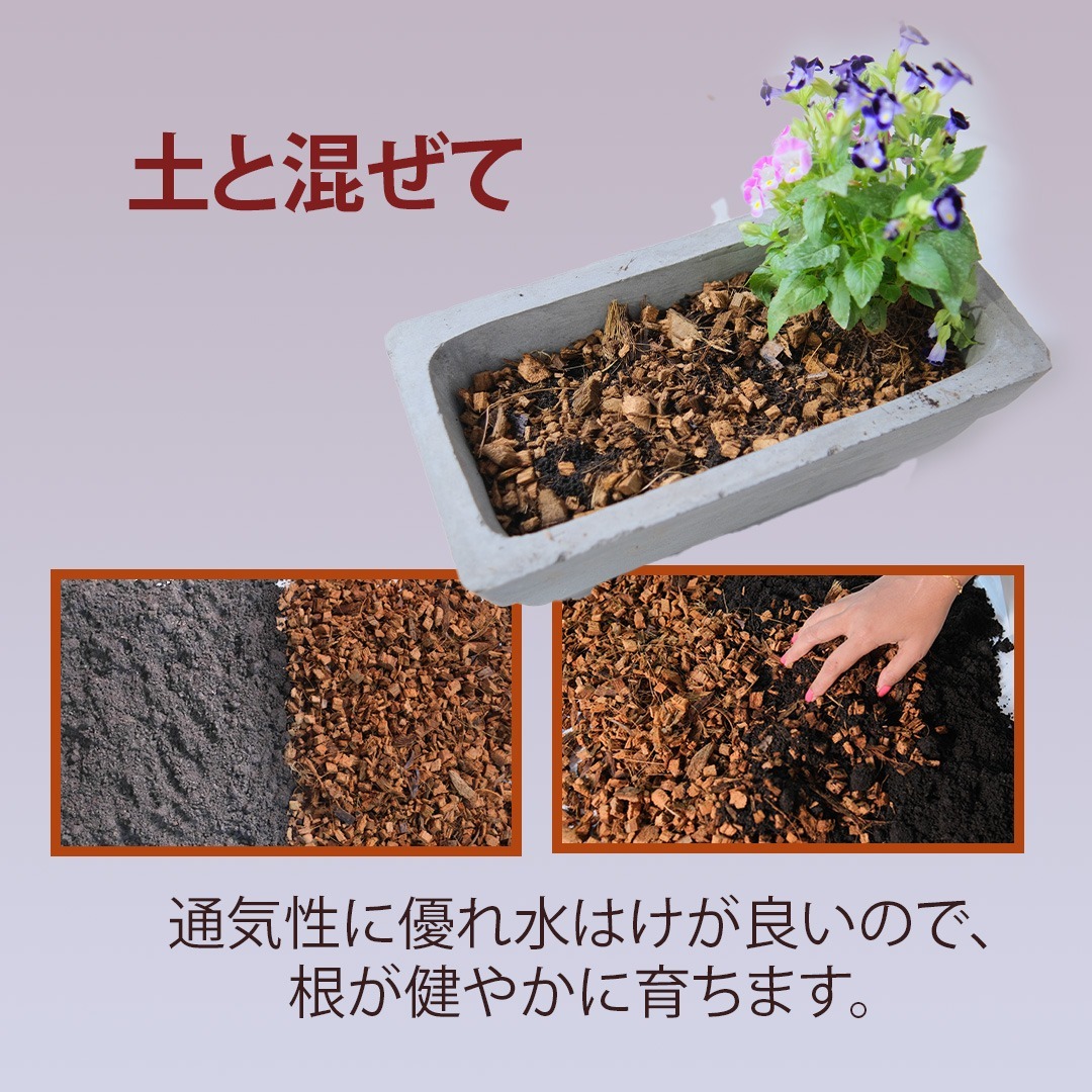 100%天然素材の土壌改良・マルチング剤で、草花や野菜が健やかに育ちます。通気性・排水性に優れているため、