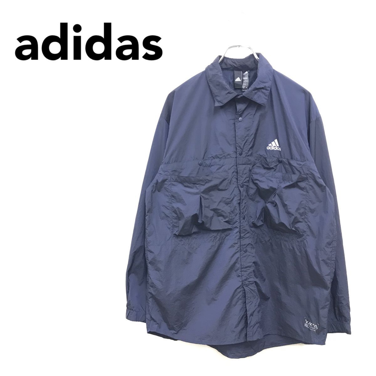 2K3330-R-N◆adidas アディダス ブルゾンジャケット◆サイズL メンズ 紳士 ライトアウター ナイロン 薄手 秋冬 ネイビー スポーツ