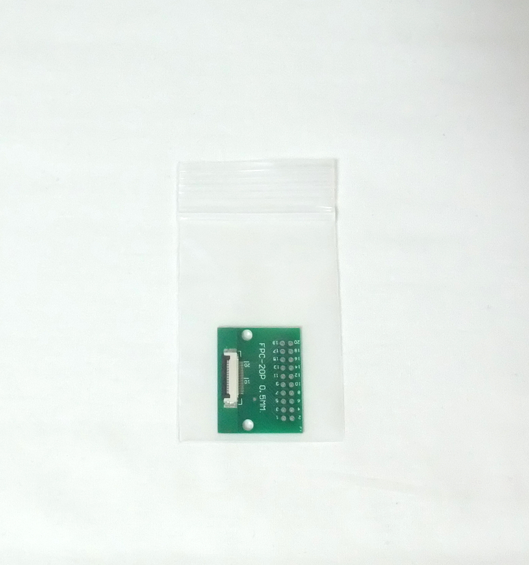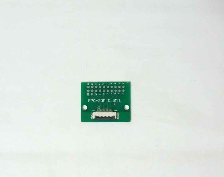フレキシブルフラットケーブル用アダプタ基板0.5mmピッチ20ピン(フリップロック式、2.54mmピッチに変換、FFC、FPC、新品)です。