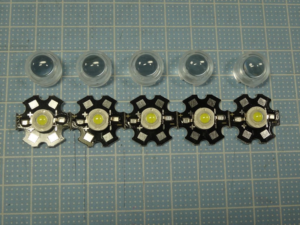 【5セット】3W白色LED×5個+レンズ5個 ヒートシンク付