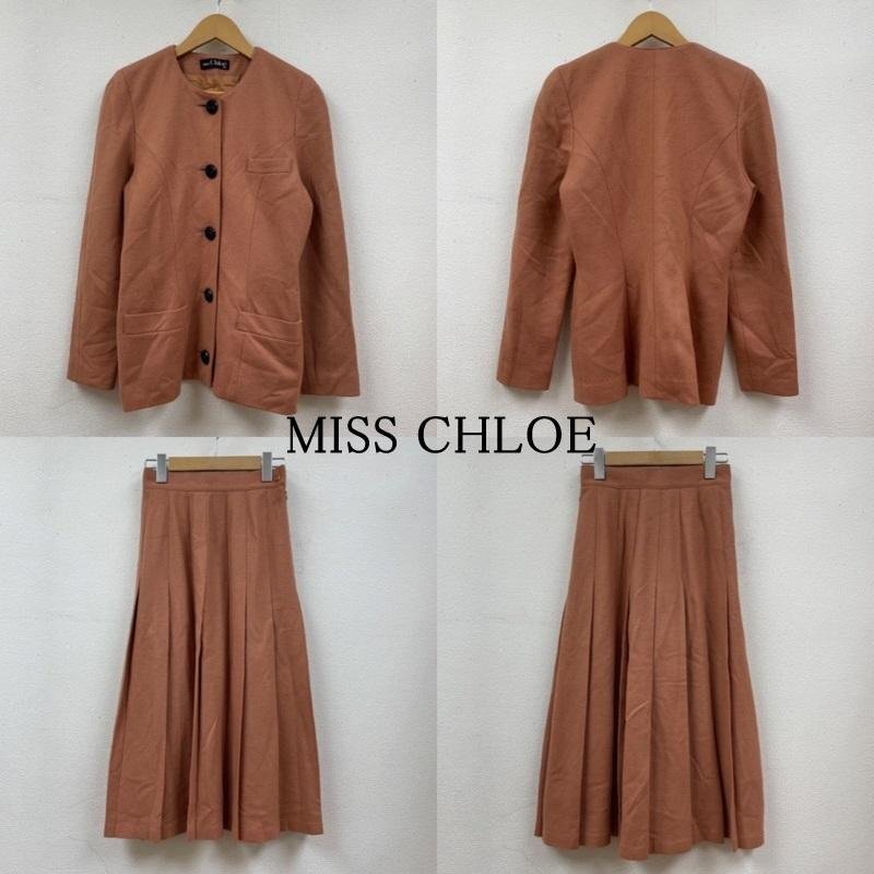 ミスクロエ ノーカラー ジャケット シングル スカート セットアップ プリーツ 40