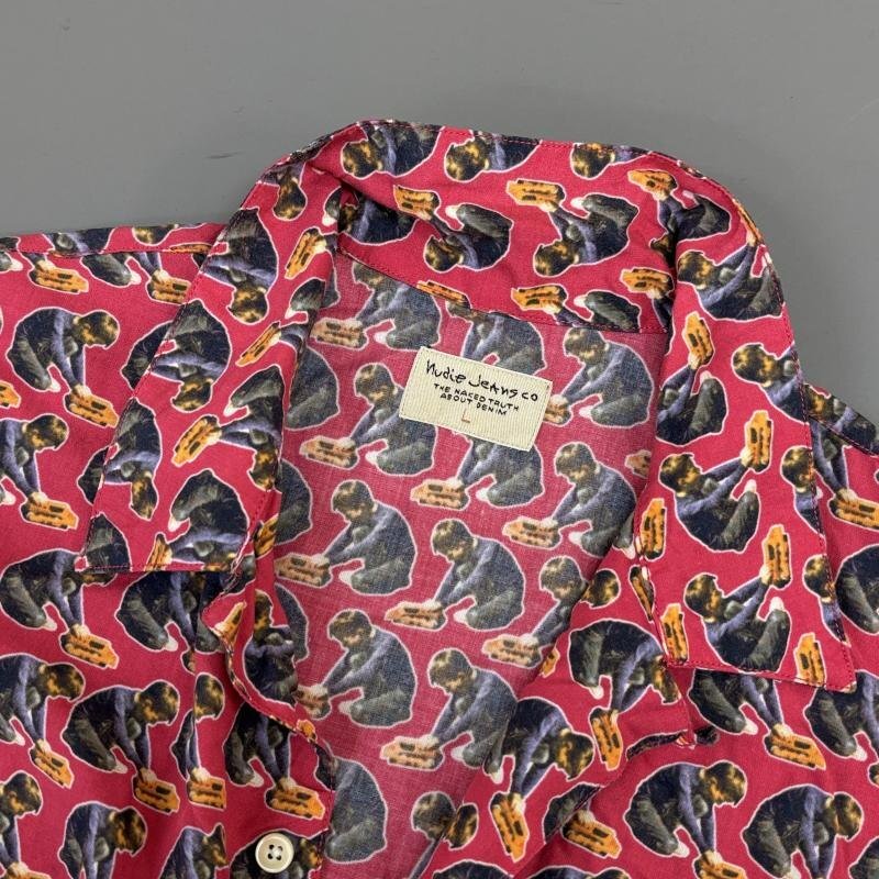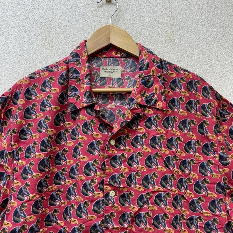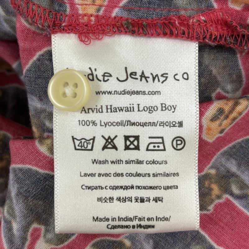 ヌーディージーンズ Arvid Hawaii Logo Boy 総柄 オープンカラー ボックス ハワイアン アロハ L