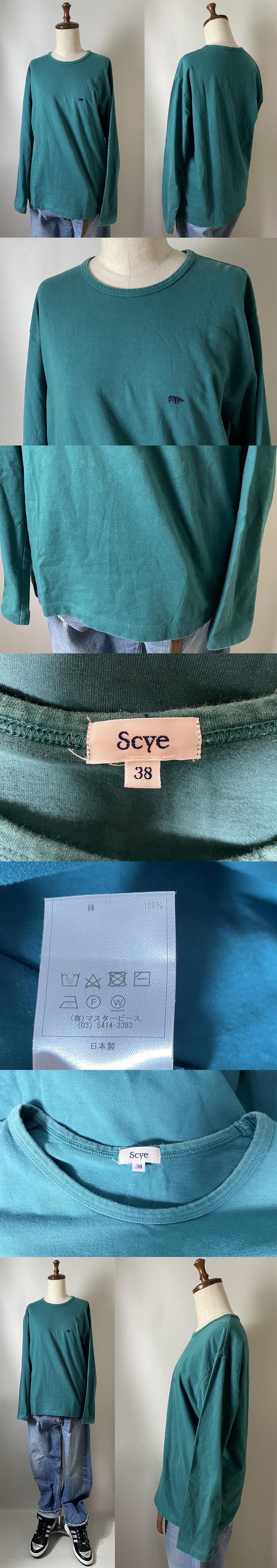 ★【国内正規品 名作 日本製 着用感有】 SCYE サイ コットン100% ワンポイント 刺繍 ロングスリーブ 長袖 Tシャツ 38 グリーン系 ロンT