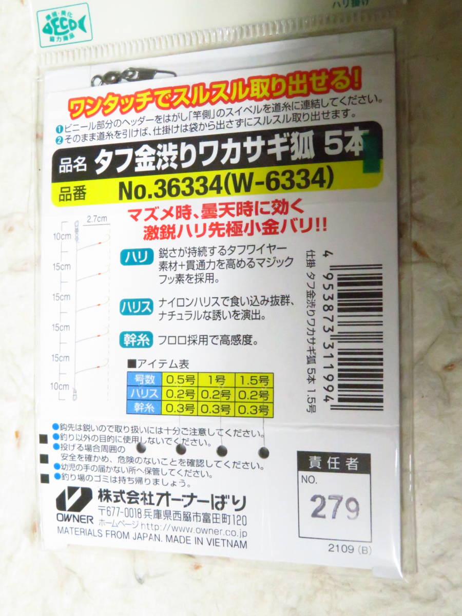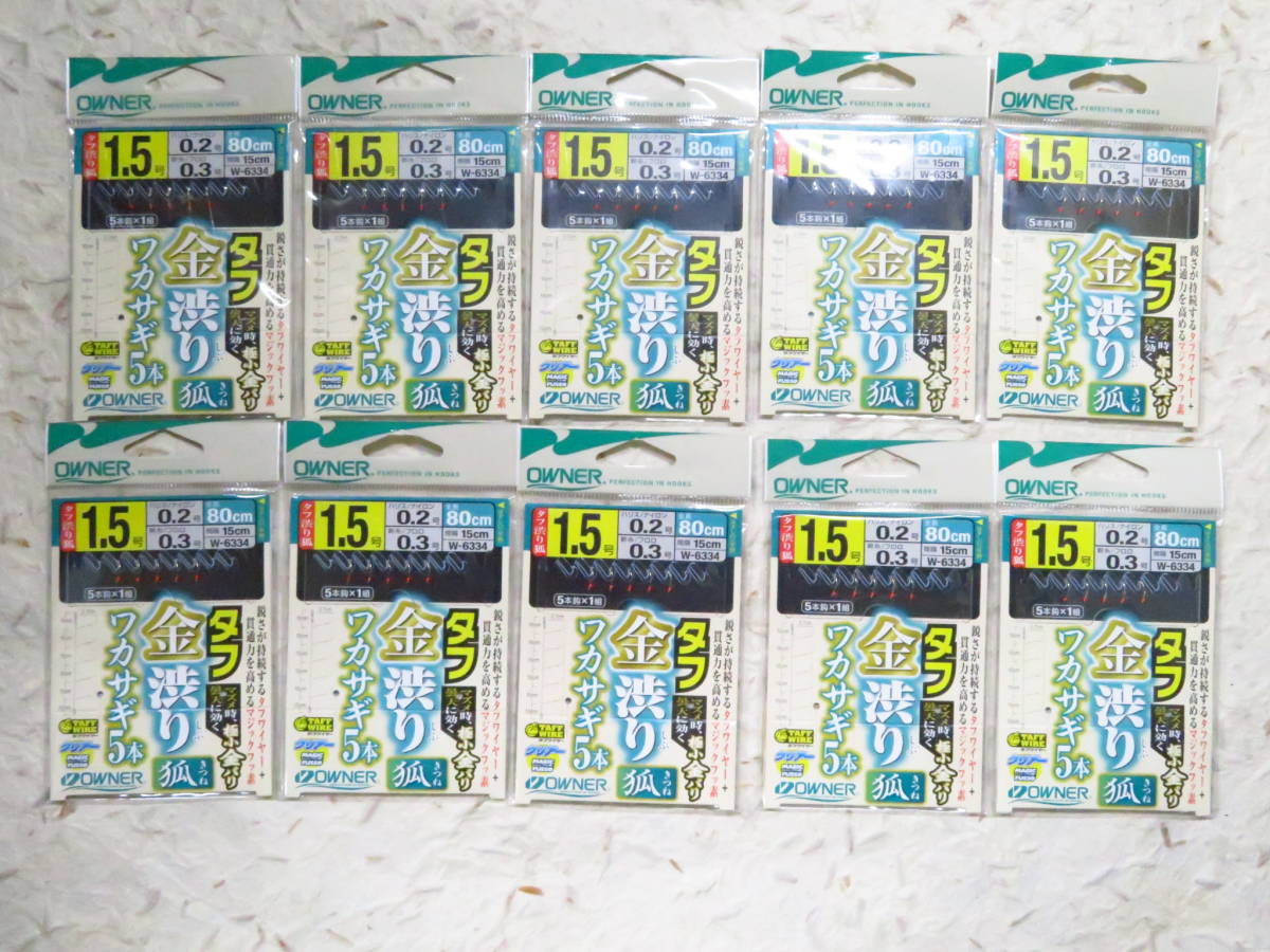 ●特価品● W-6334 オーナー タフ金渋りワカサギ 5本針 狐 1.5号 10個セット 新品 5本鈎 ワカサギ仕掛け タフ金渋りワカサギ狐